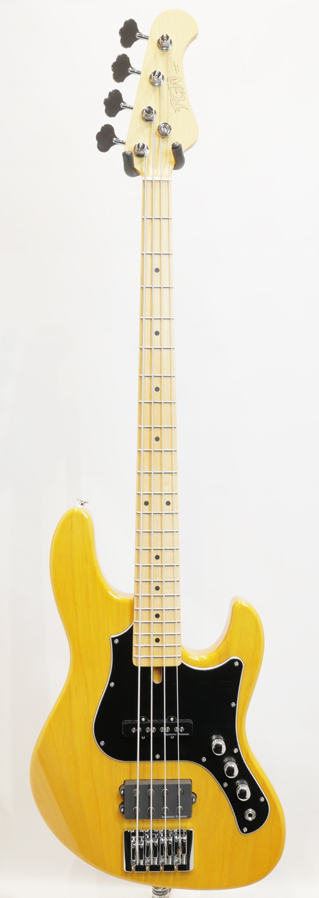 フジゲンのエレキベースラインナップの大定番、JMJのリニューアルバージョンです。 JMJ2 オリジナル ヒール・シェイプハイポジションでのプレイアビリティを保持しつつ、新たなヒール・シェイプを採用しました。弦振動の伝達を考慮しボディとネックの接地面積を広くすることで、よりタイトなサウンドを狙っています。アジャスト・ナットをエンド側に配置し、ローポジション側の安定性を高めています。アジャスト部分にザグリを設けることで、トラッドなベースと異なりネックを外さずに調整することが可能です。 搭載ピックアップはセイモア・ダンカンのクォーターパウンド(Jタイプ)とSMB-4D(MMタイプ)のコンビネーション。FGNの技術が組み合わされた当モデルが持つ出音レスポンスは、とても立ち上がりよく、レンジの広い低音が出力されてまいります。指弾きで引き締まった分厚い低音が欲しい方、ピッキングを荒げるスラップ奏法やピック弾きでパンチのある太さが欲しい方に特にオススメのモデルとなっております。トーンポッドのプッシュプル機能でJB系サウンドやリア一発でMM系サウンドもメイクできますので、バランスと独自個性の両方を併せ持った幅広いサウンドを提供してくれます。多様な特性をご堪能いただけるコスパに優れた良い楽器であることは間違いなし! Body:Ash Neck:Maple U-Shape Bolt-on Neck Fingerboard:Maple Scale:34" (864mm) Frets:22F Medium Jumbo C.F.S. Tuners:GOTOH GB11W Bridge:FGN FGBB-104 (String Pitch = 19mm) Hardware Color:Black Pickup:(Neck)Seymour Duncan Quarter-Pound SJB-3n / (Bridge)Seymour Duncan SMB-4D Controls:2Volume, 1Tone w/ Push-Pull SW (Tap) Body Finish:Gloss Strings:D'Addario EXL165 (.045-.105) Case:Original Gig Bag