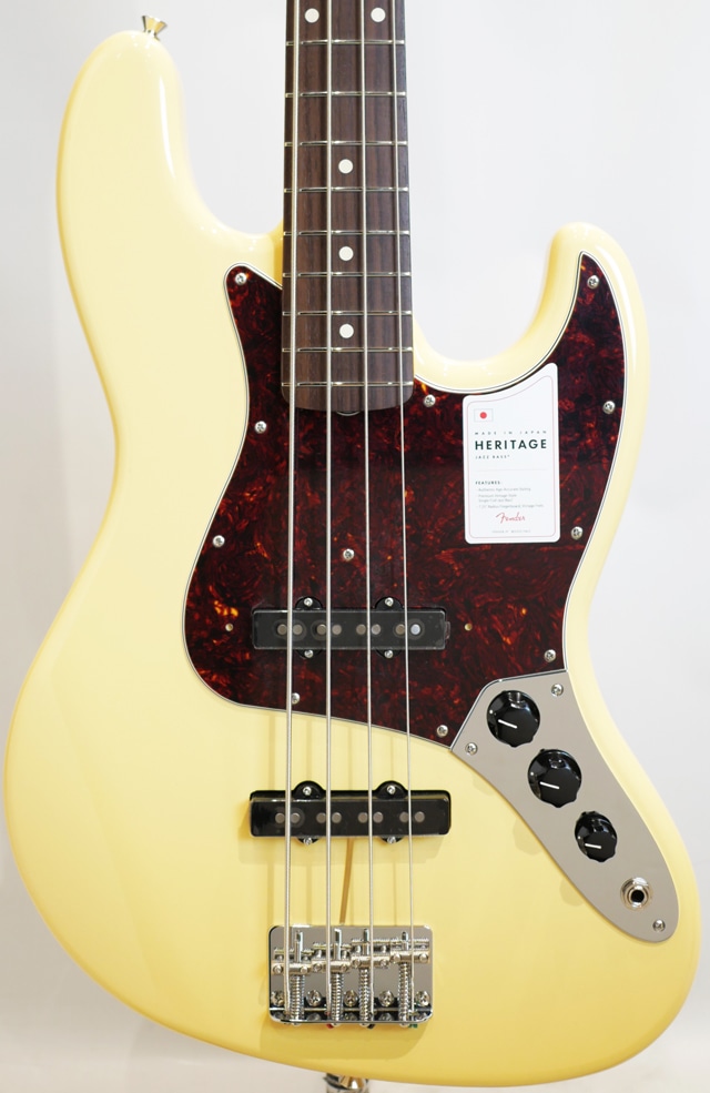 Made in Japan Heritage 60s Jazz Bass はアルダーボディにラッカーフィニッシュを施し、使用年月と共に色合いに深みが増します。20本のヴィンテージスタイルフレットを装備した7.25インチラジアスの 60s “C”シェイプメイプルネック、4つのスレデッドスチールサドル付きヴィンテージスタイルブリッジ、そしてHeritageシリーズのために特別に選定されたピックアップなど、本製品を構成するすべての仕様はクラシックなプレイアビリティと甘いヴィンテージトーンを実現するためにこだわり抜かれています。