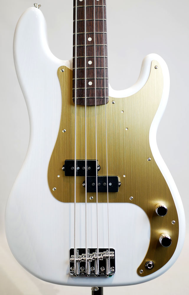 Made in Japan Heritage 50s Precision Bass はアッシュボディにうっすらと木目が見えるラッカーフィニッシュを施し、使用年月と共に色合いに深みが増します。20本のヴィンテージスタイルフレットを装備した7.25インチラジアスのThick “C”シェイプメイプルネック、4つのスレデッドスチールサドル付きのヴィンテージスタイルブリッジ、そしてHeritageシリーズのために特別に選定されたピックアップなど、本製品を構成するすべての仕様はクラシックなプレイアビリティと甘いヴィンテージトーンを実現するためにこだわり抜かれています。