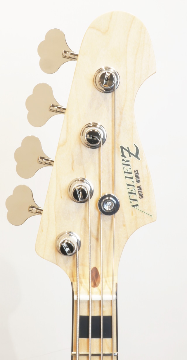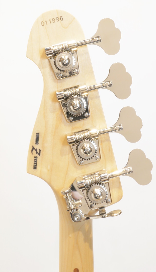 アッシュボディ、メイプルネック/メイプル指板のウッドコンビネーションはもはやお馴染みの仕様。スラップ時の演奏性を高めるローアクションのセッティング、弦のテンションを損なわない様に工夫されたヘッド設計、豊かなサスティーンを生み出す質量と面積を持ったオリジナルブリッジ、アクリルクリアのピックガードはその厚みで弦とピックガードのスペースを狭めプル時の指の入り込みを少なくしスムーズな操作性を確保します。