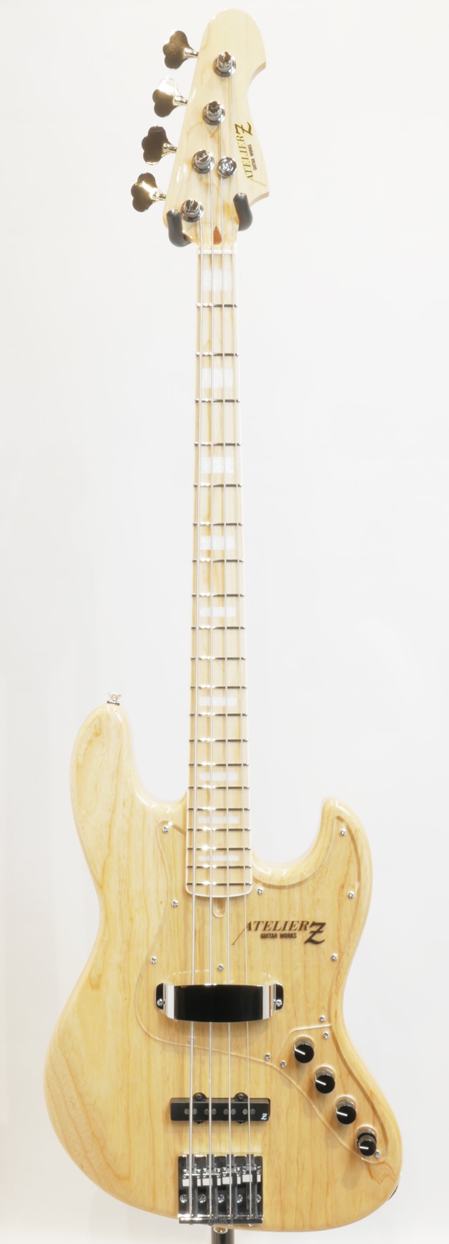 アッシュボディ、メイプルネック/メイプル指板のウッドコンビネーションはもはやお馴染みの仕様。ネック裏はサテン仕様が現在は採用され、スラップ時の演奏性を高めるローアクションのセッティング、弦のテンションを損なわない様に工夫されたヘッド設計、豊かなサスティーンを生み出す質量と面積を持ったオリジナルブリッジ、アクリルクリアのピックガードはその厚みで弦とピックガードのスペースを狭めプル時の指の入り込みを少なくしスムーズな操作性を確保します。