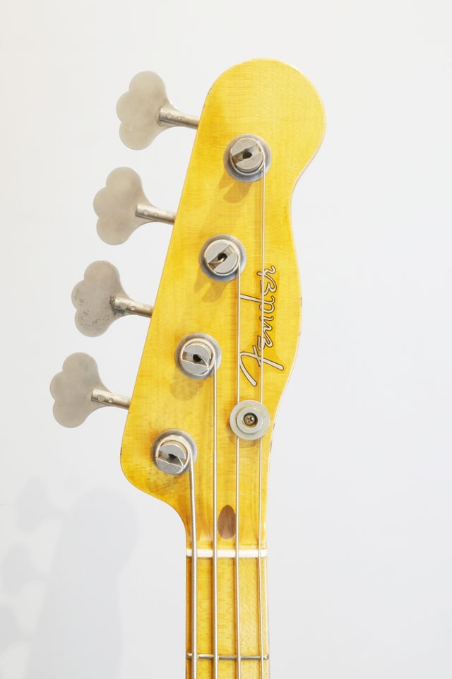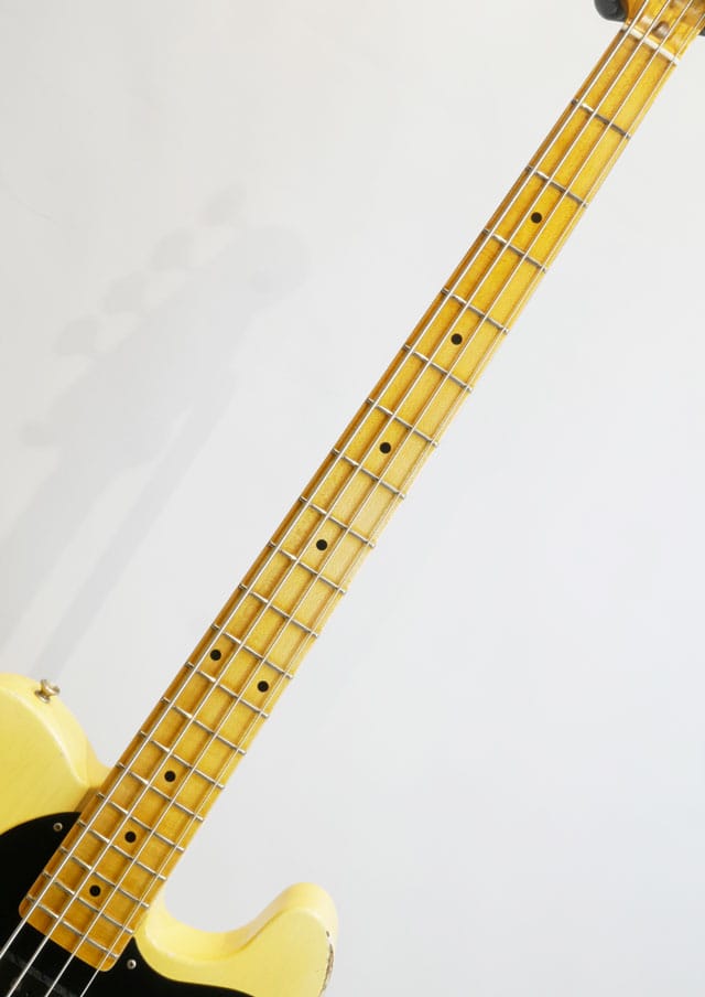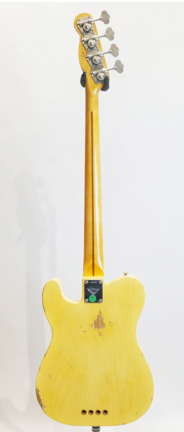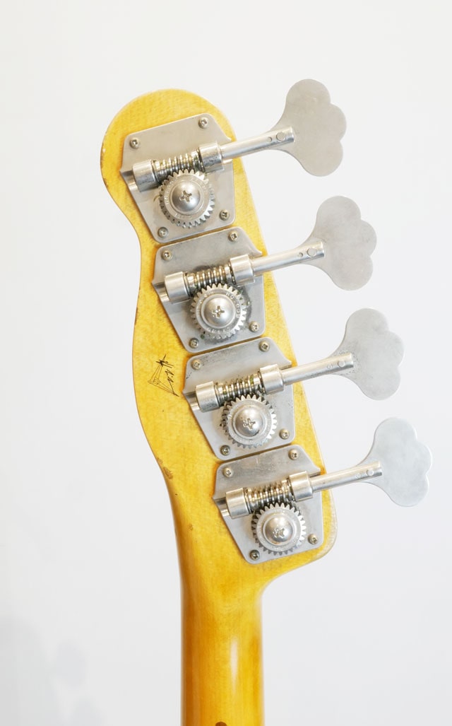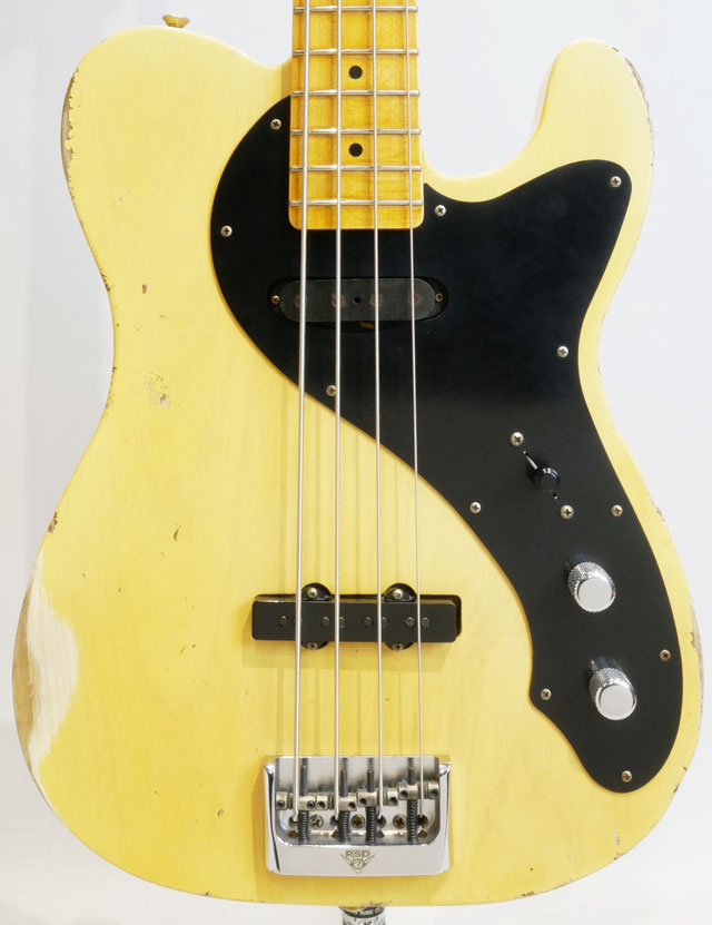 彼の制作する楽器は、スタンダードなキャラクターでありながら、その実、タイトでクリアな音質を持ち合わせる精度な高い印象がございます。当モデルも例に漏れず、クリアで硬質な音像を持ち合わせ、リアに採用されたシングルコイルがそのキャラクターを更に惹き立てます。ピッキングタッチを強くした際のアタックは、正にギターのテレキャスターその質感を彷彿とさせるオリジナリティ豊かなベースです。