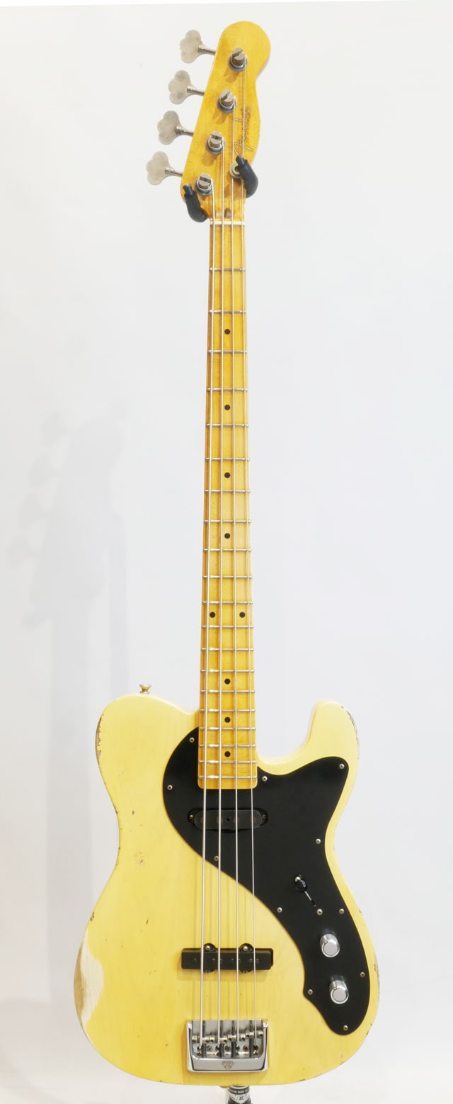 THINLINE TELE BASSと名付けられた当モデルは、史上初のソリッドギターとして世に排出されたヘッドロゴにモデル名を配さないノーキャスターシリーズにインスピレーションを受けており、ボディ形状もテレキャスターに準じております。ボディ材、ネック材は大変軽量な物が採用されており、ボディバランスにもストレスを感じません。その独特な仕様に、2019年からFender社でシリーズ販売されているパラレルユニバース的な世界観を感じます。