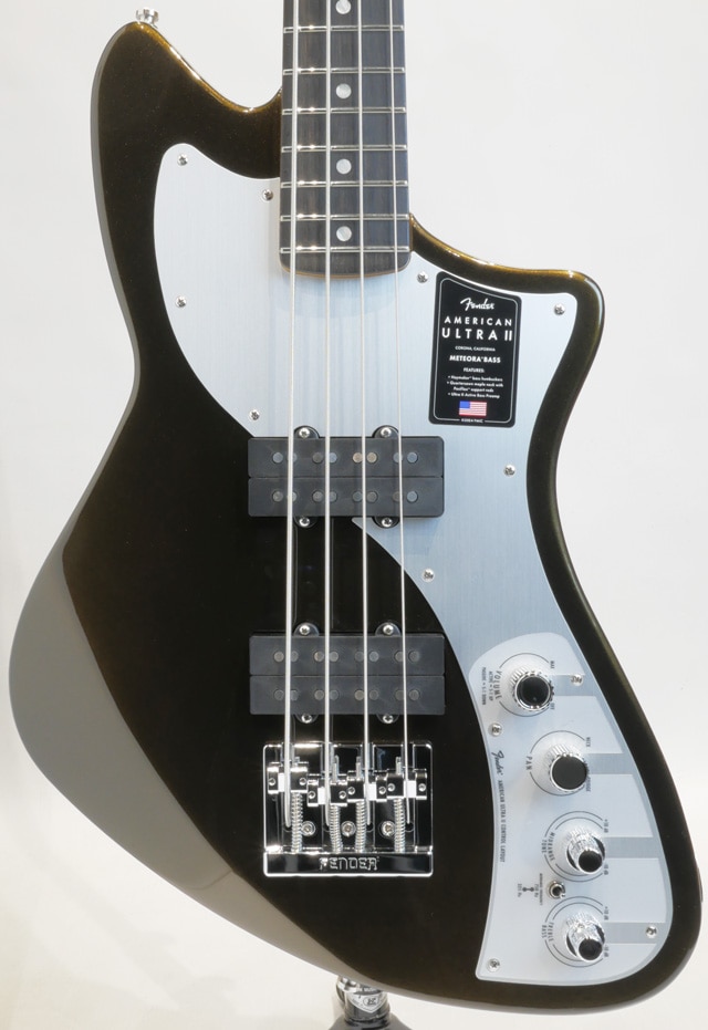American Ultra II Meteora Bassは、2基のHaymakerベース用ハムバッカーを装備し、圧巻のローエンド、芯のあるミッドレンジ、キメ細かいハイエンドトーンまで、ハムノイズとは無縁の幅広い極上のサウンドが得られます。特許取得済みのS-1 スイッチにより、ピックアップのアクティブ/パッシブモードの切り替えが可能で、パッシブトーンコントロール、またはミッドレンジの周波数帯域を調整できるアクティブ3バンドEQのトーンコントロールが得られます。調整可能なHiMass トップロード/ストリングスルーボディブリッジ、テーパードシャフト付きFenderライトウェイトチューニングマシン、ナールドアルミノブ、1-plyアノダイズドピックガードなど、高い実用性を誇る機能を搭載しています。