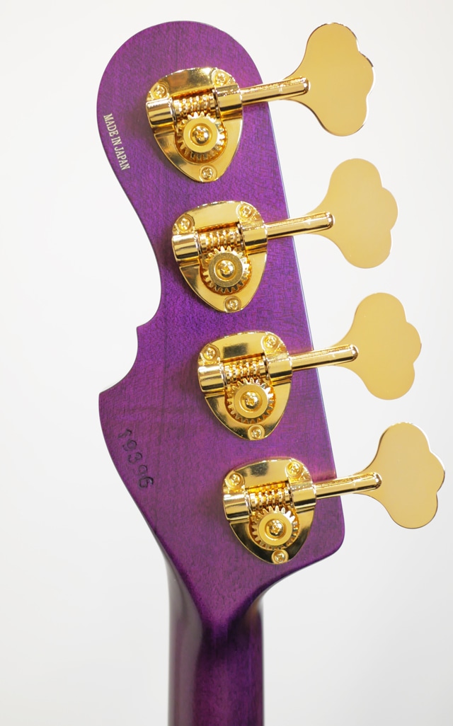極上のトップ材のボディバックには厳選された1ピースアッシュ材が使用され、ネック材も鮮やかな柾目のメイプル材がチョイスされております。中低音の粘り強さからなるボリューム感のある音の芯がその木材のチョイスから感じられるサウンドを持っており、パッシブ・アクティブ両モードでの音質の差も極めて少なく、楽器固有のレンジ間で鳴らすならモードを選ばず、アクティブ切り替えで音量感を瞬時に稼ぐといった設定にしておきメリハリあるご使用方法もおすすめです。24フレット仕様が生み出す個性的なフォルムの存在感はもちろん、プレイポジションのカバー範囲も広く、個性とプレイアビリティ、濃密なサウンドが際立った限定モデルです。
