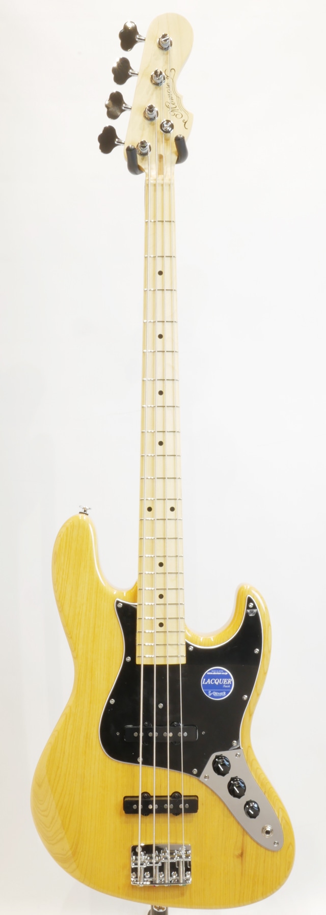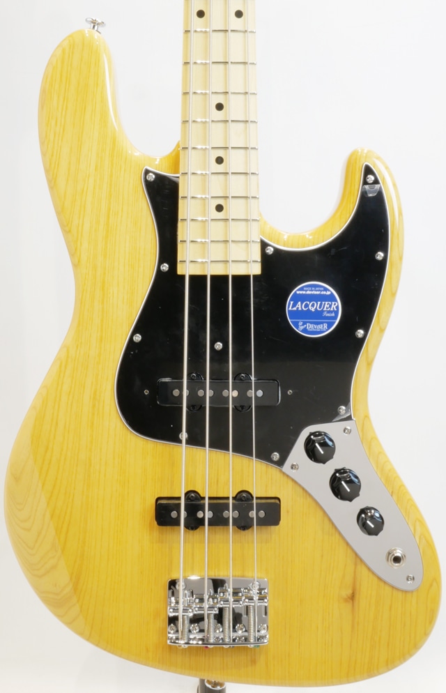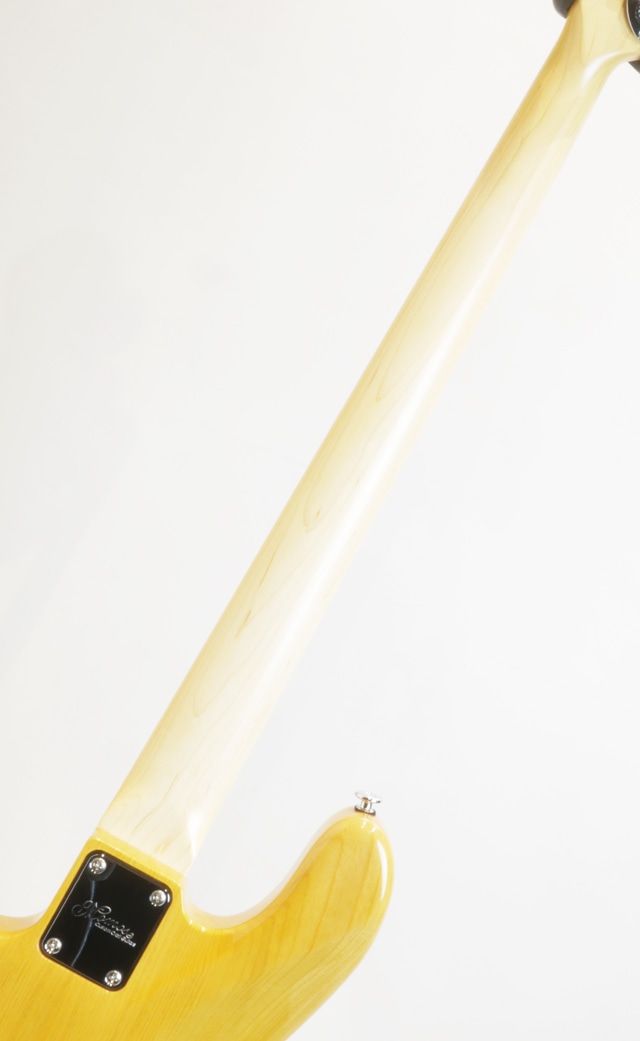 当機はアッシュボディ、メイプルネック、メイプル指板で構成。アッシュ材の豊かに鳴るレンジの広さ、まとまりの良い存在感とレスポンスの良さ、音の芯がはっきりと太く感じ取れる中低域、押弦とピッキングタッチのしなやかな感触から生み出される弾力を含んだ芳醇で上品な低音とクリアな高音域を備えたベーストーンを出力します。ピッキング時の弦への負荷が少ないアプローチでもしなやかにしっかりとした音の芯が捉えられ、とても鳴らしやすい仕上がりになっております。ピッキングの力が弱いと感じているプレイヤーにも力強いベーストーンを奏でられますので、高いプレイアビリティで上質なベースサウンドを提供してくれます。