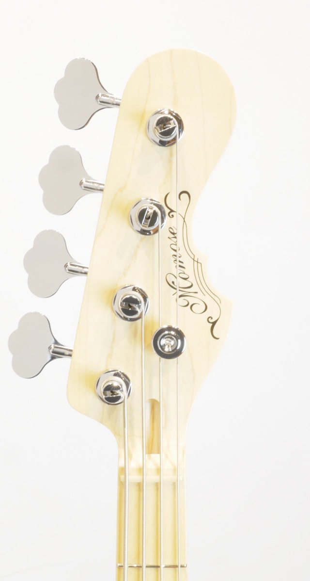 Momose Original Series『MJ』は、トラディショナルなJBスタイルを継承しつつも、Momose独自のブラッシュアップが施されたオリジナルモデルです。一般的なJBタイプと比べ、高音弦側のホーン部の抉りが大きく取られていることによりハイポジションの演奏性が高まるほか、手が大きなプレイヤーの方でもストレス無くハイフレットに向かって駆け上がるプレイが可能になります。また、オーソドックスなプレートジョイントを採用しながらもプレート部分に落とし込み加工を施すことで演奏性をさらに高め、指板サイドには指板と同材を使用したウッドバインディングを採用し滑らかな指板サイドを実現するほか、季節変化や長年の使用でフレットのバリが出てしまう様なトラブルも防止する様、演奏面でビハインドに成り得る箇所に細やかな処置が施されております。