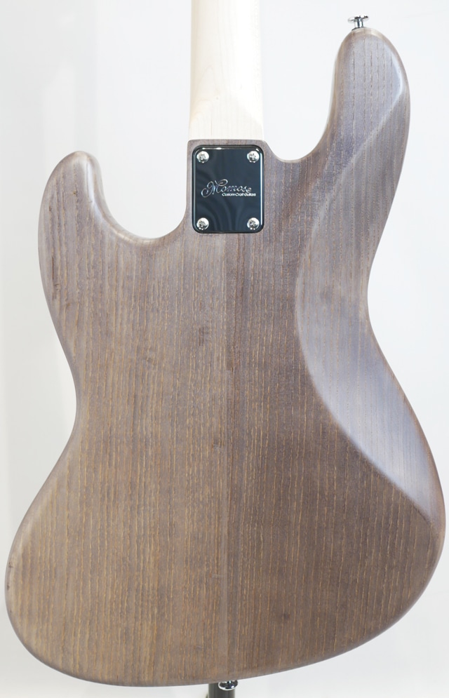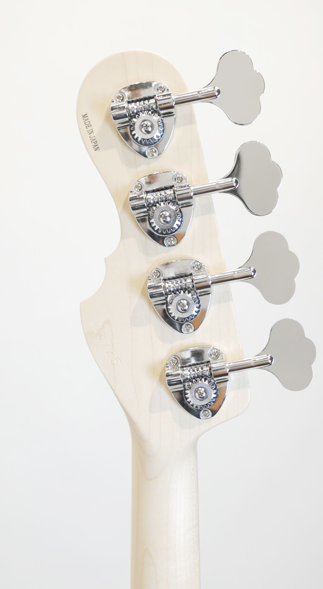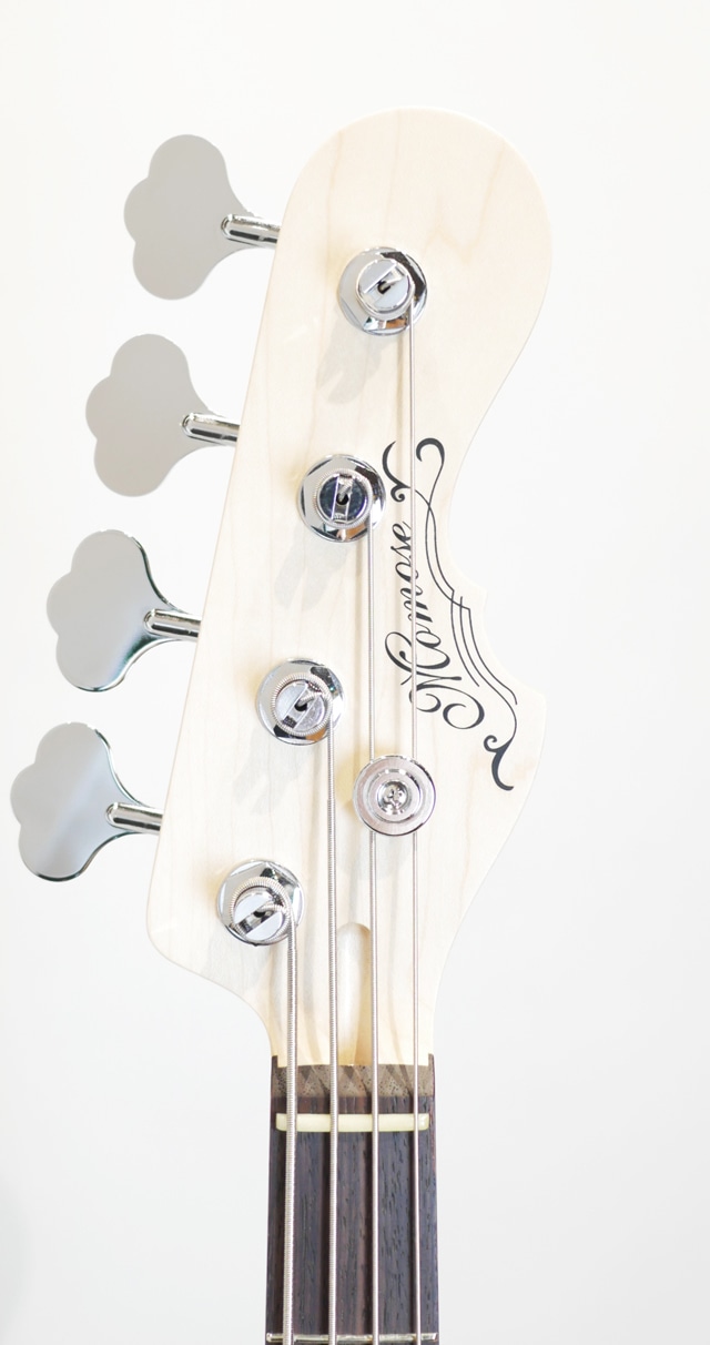 Momose Original Series『MJ』は、トラディショナルなJBスタイルを継承しつつも、Momose独自のブラッシュアップが施されたオリジナルモデルです。一般的なJBタイプと比べ、高音弦側のホーン部の抉りが大きく取られていることによりハイポジションの演奏性が高まるほか、手が大きなプレイヤーの方でもストレス無くハイフレットに向かって駆け上がるプレイが可能になります。また、オーソドックスなプレートジョイントを採用しながらもプレート部分に落とし込み加工を施すことで演奏性をさらに高め、指板サイドには指板と同材を使用したウッドバインディングを採用し滑らかな指板サイドを実現するほか、季節変化や長年の使用でフレットのバリが出てしまう様なトラブルも防止する様、演奏面でビハインドに成り得る箇所に細やかな処置が施されております。