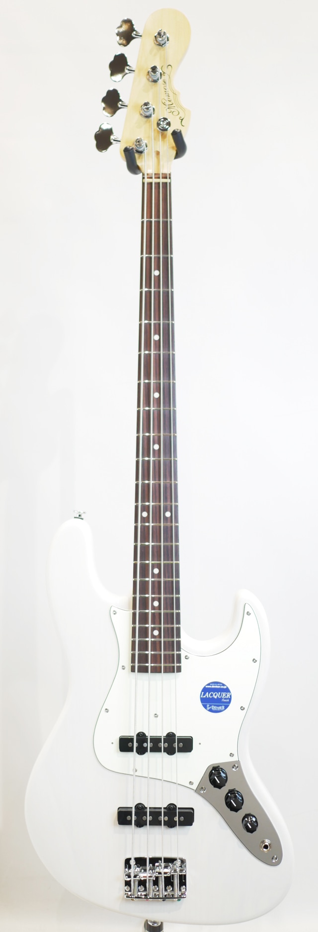 当機はアッシュボディ、メイプルネック、ローズウッド指板で構成。アッシュ材の豊かに鳴るレンジの広さ、まとまりの良い存在感とレスポンスの良さ、音の芯がはっきりと太く感じ取れる中低域、押弦とピッキングタッチのしなやかな感触から生み出されるカラッと響く上品な低音とクリアな高音域を備えたベーストーンを出力します。ピッキング時の弦への負荷が少ないアプローチでもしなやかにしっかりとした音の芯が捉えられ、とても鳴らしやすい仕上がりになっております。ピッキングの力が弱いと感じているプレイヤーにも力強いベーストーンを奏でられますので、高いプレイアビリティで上質なベースサウンドを提供してくれます。