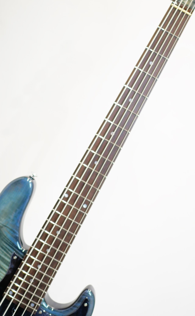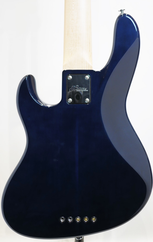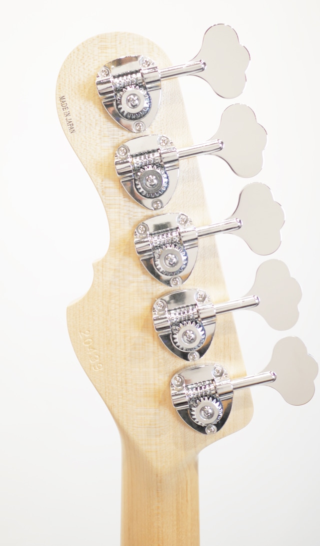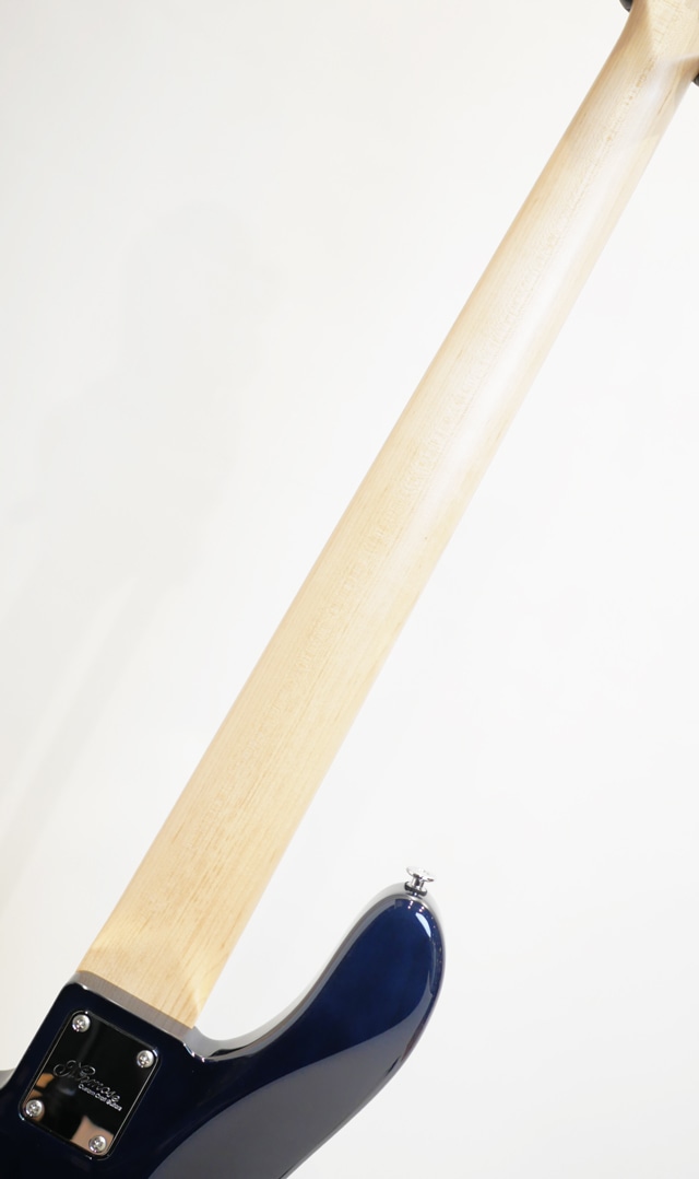 最大の特徴となるボディはエッジに丸みのある面取り加工を施すことにより、スリムになりがちな24F構造でありながらもトラディショナルな雰囲気を残し、ネックジョイント裏のコンターやホーン部分の切り込み等、ハイフレットの演奏性を高めるための加工が行われております。一般的な24フレットのベースはカッタウェイの開口部が広いことによりボディとネックの接合面積が小さくなる場合が多く、この構造により20フレットや21フレットのベースと比較するとやや芯の細いサウンドになる傾向があり、本モデルでは接合面積を広くとる「ラージジョイント」を採用することにより、適度に太く、トラディショナルなJBスタイルのベースに近いキャラクターのトーンを実現しています。