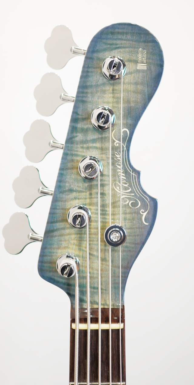 「ビンテージの雰囲気とサウンドを持った24フレットベース」をテーマに、20フレットや21フレットのベースの見た目やサウンドのキャラクターを保ったまま24フレットまで音域を拡張させるために、細部にわたってデザインを検討しながら1から新しいボディシェイプを開発したMomose職人による設計が施されたモデルです。