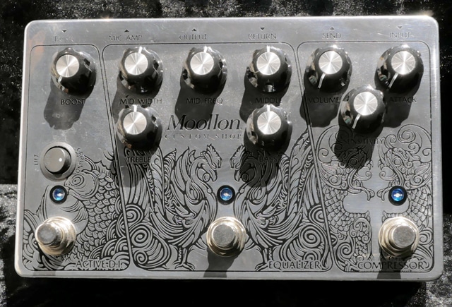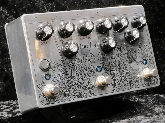 「Moollon / Custom Shop 3 Plus」は、コンプレッサー、イコライザー、シグナルブーストで構成され、あらゆる楽器に対応可能なフルレンジにデザインされたペダルです。3つのセクションに加え、Send/Return、バランスアウトを備えていますので、レコーディングスタジオやライブで、アコースティックギターやエレキベースをライン・アクティブ化し効率的にコンソールへ出力することも可能です。