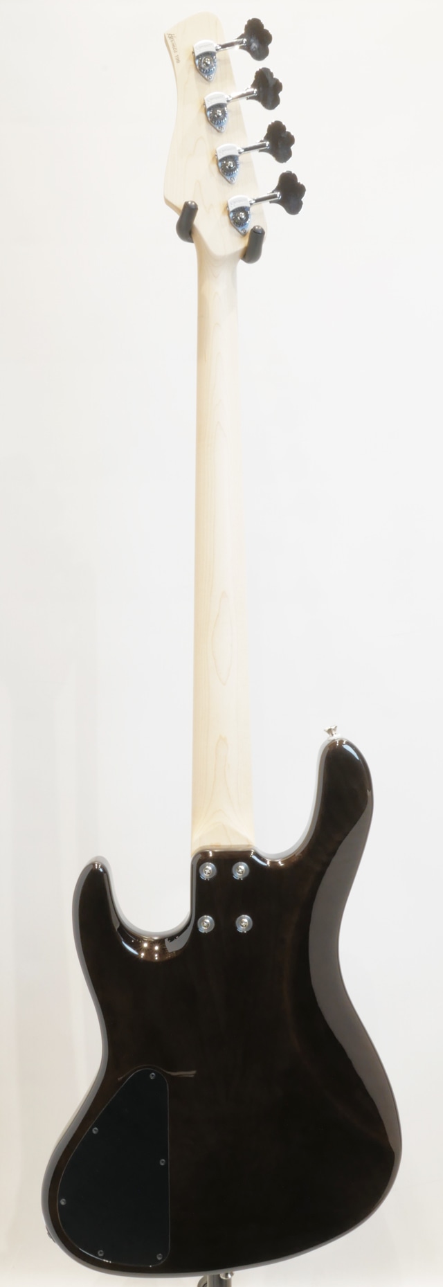 アッシュボディのベースでありながら、総重量約3.7kgと非常に軽量に仕上がっており、過去の国産Metrolineシリーズを彷彿とさせます。どっしりとしたボトムとパリンと鳴る乾いたアタックが心地良く、Funk系のフレーズやスラップが映えるサウンドで、1弦12フレット上で約1.5mm、4弦で約2.1mmのローアクションからなる高いプレイアビリティによる恩恵もあり、非常にストレスフリーに演奏をお楽しみ頂けます。ローアクションでありながらも音詰まりや鳴りが悪いということも全く無く、John Suhr直伝のフレットワークの精度の高さが伺えます。
