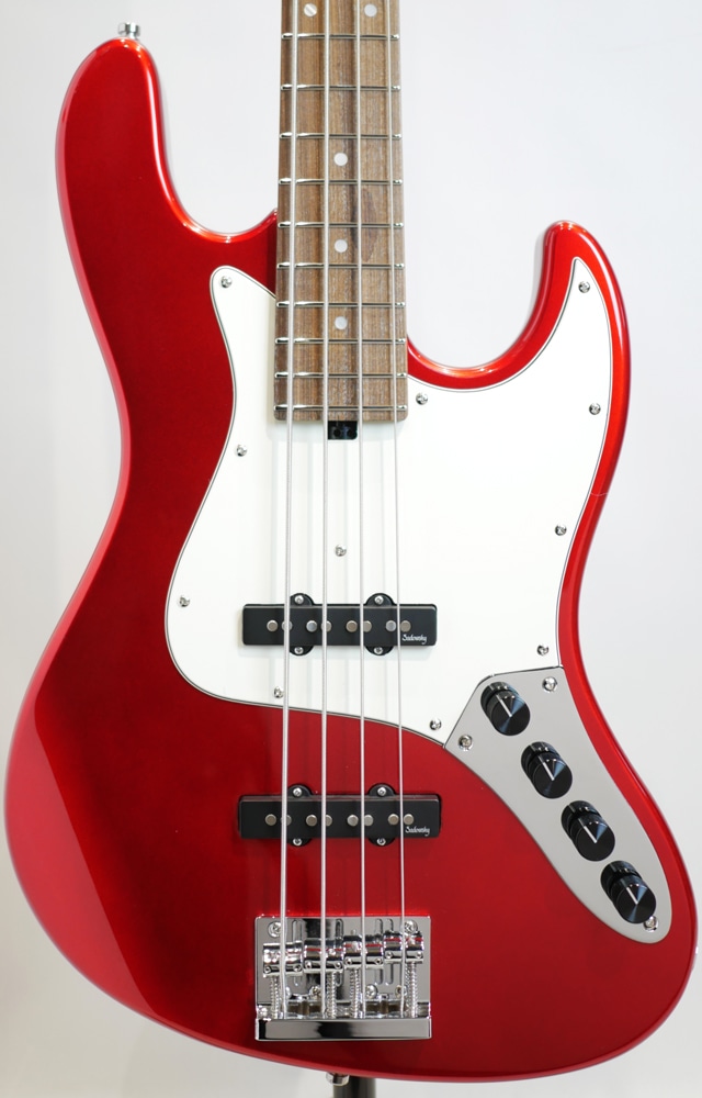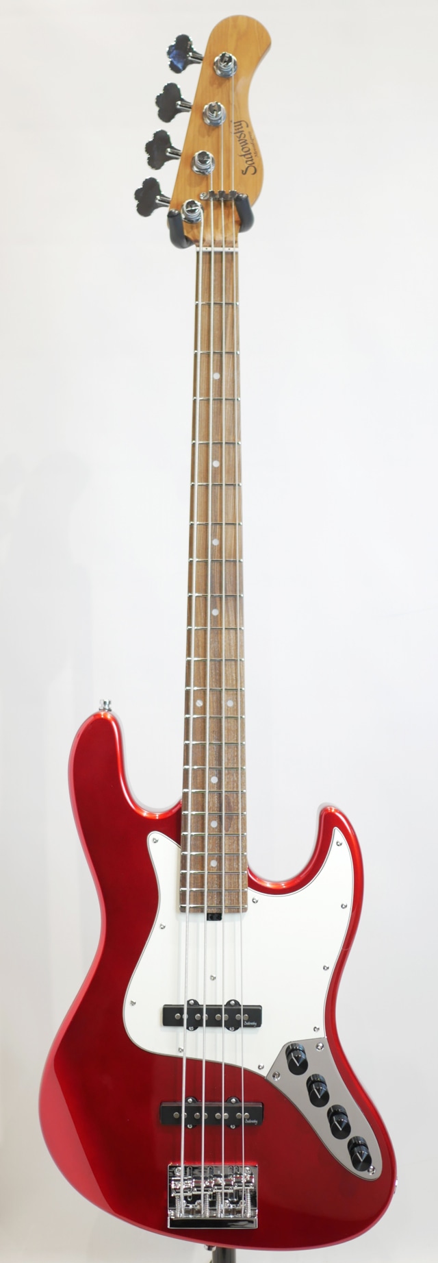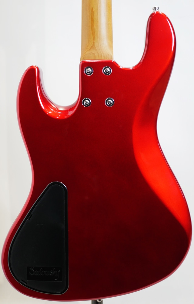 当機は、オクメボディ、ローステッドメイプルネック&モラド指板、サドウスキーではお馴染みの弦の先をブリッジエンドから通す事なくボールエンド側で弦の脱着がクイックに行えるオリジナルデザインのブリッジ、オリジナルのハムキャンセルピックアップはクリーンで明瞭なトーンとワイドレンジを持ち、2EQ仕様のオリジナルプリアンプが装備されております。 ネックはナット幅39.2mm、フラットな感触の12”の指板カーブ、ネックフィニッシュにはサテンフィニッシュが採用されスムーズな操作性を持たせてくれております。 ボディのオクメ材は西アフリカを主な原産地とするマホガニー材の特徴に似た低域のふくよかな重心の低いトーンで響きの暖かさと広がりが感じられる木材として多くのブランドでも採用されています。 ネックのローステッドメイプル材は”Sadowsky”上位機種では追加オプションとして用いられている、高温での加熱処理を施し木材の中の水分や油分を揮発させることにより剛性を高めたメイプル材となり、反りへの安定性と素早い立ち上がり(スムーズなレスポンス)、音抜けの良い響きと芯の太さが特徴として挙げらる木材です。 総合的に”Sadowsky”ブランドらしさが感じられるパワフルさとパンチのあるサウンドキャラクターを備えており、指板のモラド材が特徴も加わってか楽器の中低域がよりタイトに引き締まった鳴りと独特なエッジ感を与えてくれている印象がサウンドから感じられます。クリアなトーンの中に乾いた鳴りと表現される様なサスティーンも感じられる仕上がりとなっております。ナット幅が若干広がったものの演奏性には何ら違和感を感じる事無くご使用頂けますので、是非手に取ってそのポテンシャルをお楽しみ下さい。 Condition : NEW Body:Okoume Neck:Roasted Maple Fingerboard:Morado(Pau Ferro) Fingerboard Radius : 12” Scale Length : 864mm(34inch) Width at Nut:39.2mm(1.54inch) Bridge:Sadowsky bridge with quick string release Machineheads:Sadowsky Light machine heads with open gear Fret : 21 Nickel Silver (width: 0.094" (2.4 mm) / height: 0.051" (1.3 mm) Pickup:Passive hum-cancelling Sadowsky J-Style(Bridge P.U. 60s position) Electronics : Sadowsky Active 2-Way Controls : Volume / Balance / Treble / Bass(Push/pull function at Bass knob for preamp bypass) Case : Sadowsky Portabag (SAC BAG BASS PORTA)