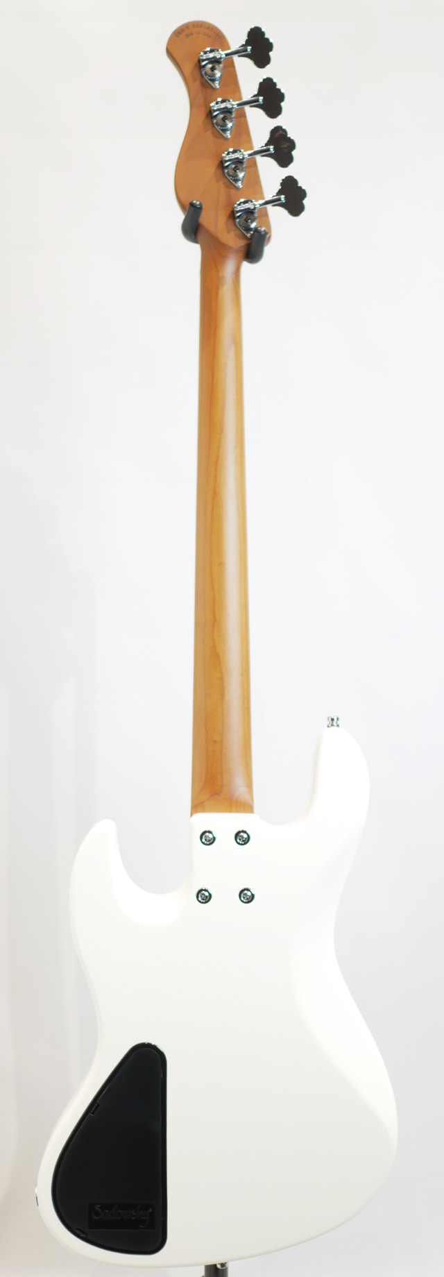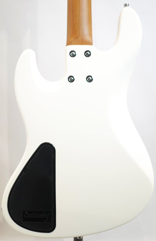 総合的に”Sadowsky”ブランドらしさが感じられるパワフルさとパンチのあるサウンドキャラクターを備えており、指板のモラド材が特徴も加わってか楽器の中低域がよりタイトに引き締まった鳴りと独特なエッジ感を与えてくれている印象がサウンドから感じられます。クリアなトーンの中に乾いた鳴りと表現される様なサスティーンも感じられる仕上がりとなっております。ナット幅が若干広がったものの演奏性には何ら違和感を感じる事無くご使用頂けますので、是非手に取ってそのポテンシャルをお楽しみ下さい。
