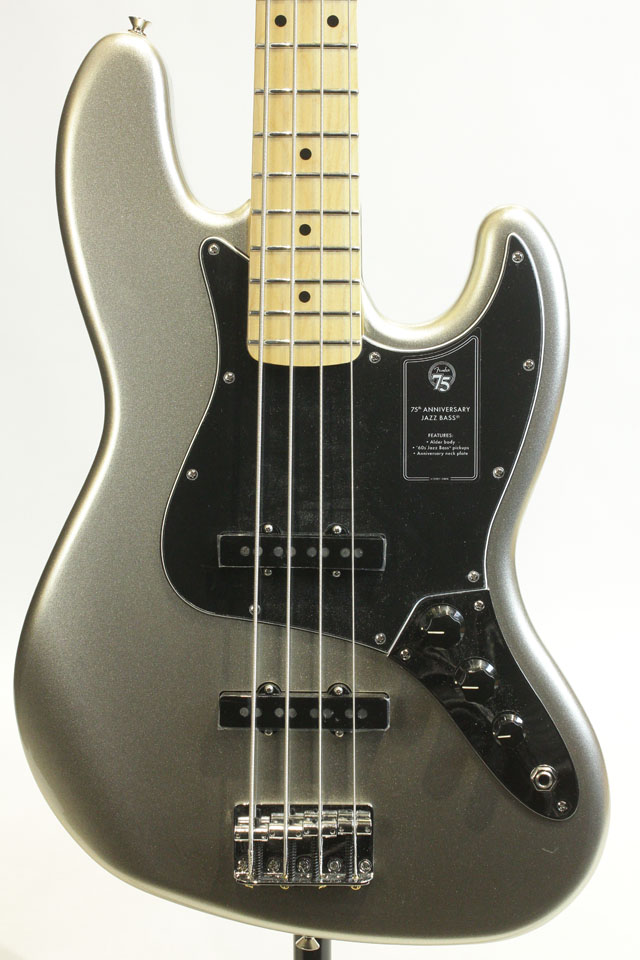 75th Anniversary Precision Bass は、マッチングヘッドも印象的なダイヤモンドアニバーサリーメタリックフィニッシュで仕上げられています。優れたプレイアビリティを誇るModern “C”シェイプのサテンフィニッシュネックには、ミディアムジャンボフレットを搭載しています。Vintage-style 50s Precision Bassピックアップは低音にパンチを与え、4サドルブリッジがチューニングの安定性をもたらします。ネックプレートは75周年を記念した特別仕様で、デラックスギグバッグが付属します。