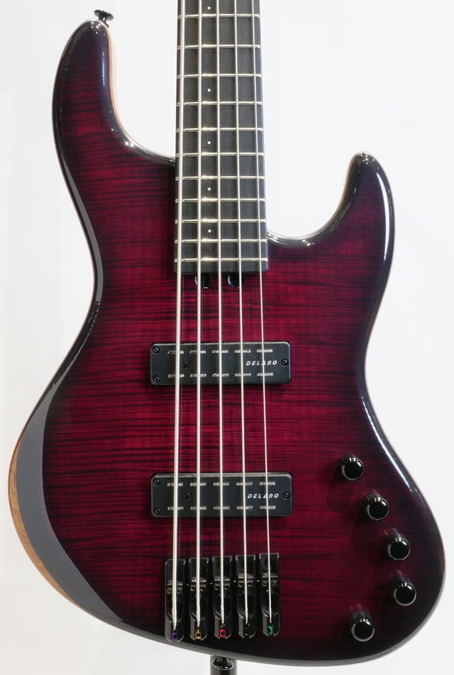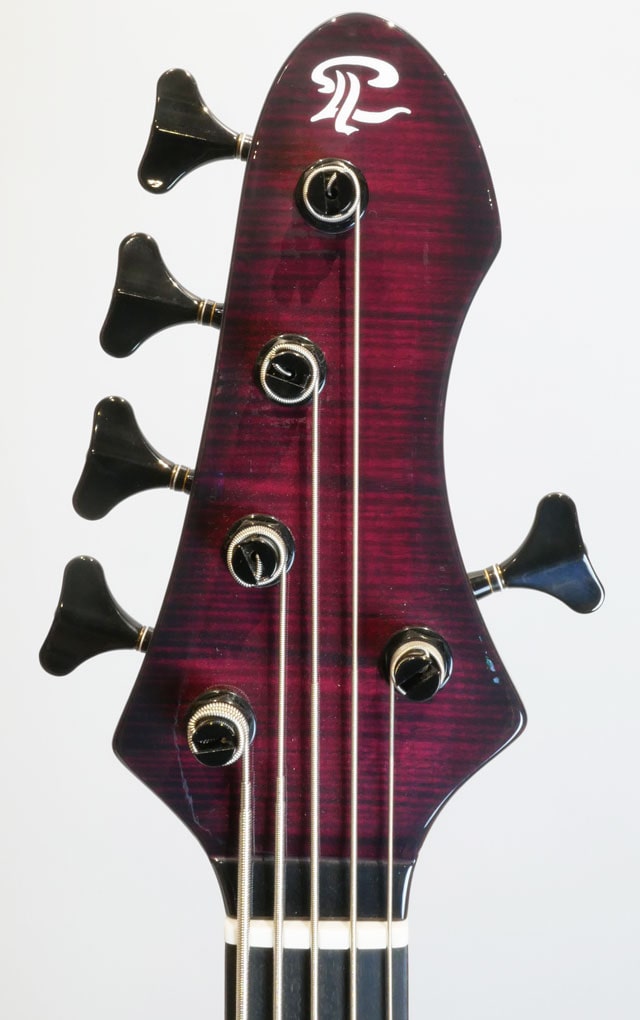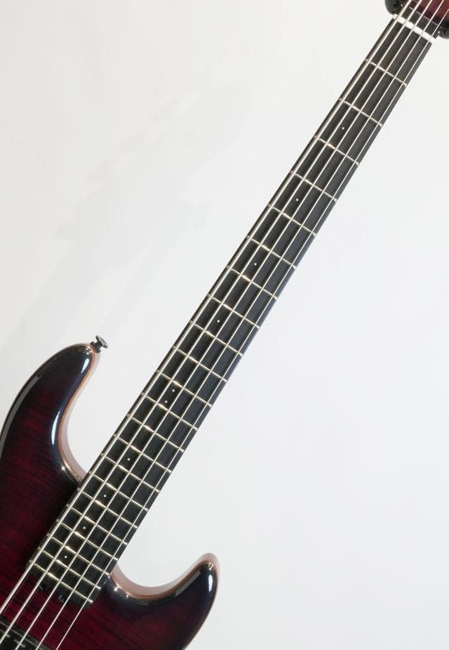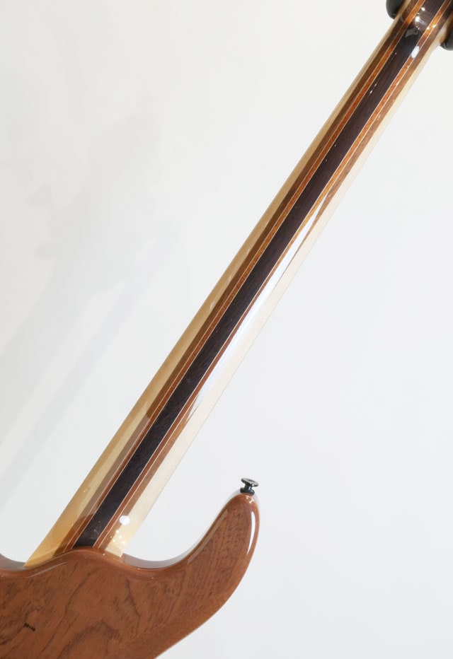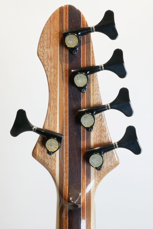 11pcから構成された剛性の高いネックから得られるスピーディなレスポンスと立ち上がりはお見事。素早いパッセージにもしっかり反応致します。デラノピックアップとグロッケンクランクとの相性も良く、重厚なボトムもブーミー過ぎず、タイトに引き締まったクリアなボトムを再生し、高音域も鋭く煌びやかに鳴り響きます。ボディバックのマホガニーの特性である密度のある中音域もしっかり再生されておりますので、3band-EQの効きも良く幅広いサウンドメイクが可能です。ヘッドには角度も付いておりますの、各弦のテンションも保たれ、発音の良い重厚はLow-Bを再生致します。