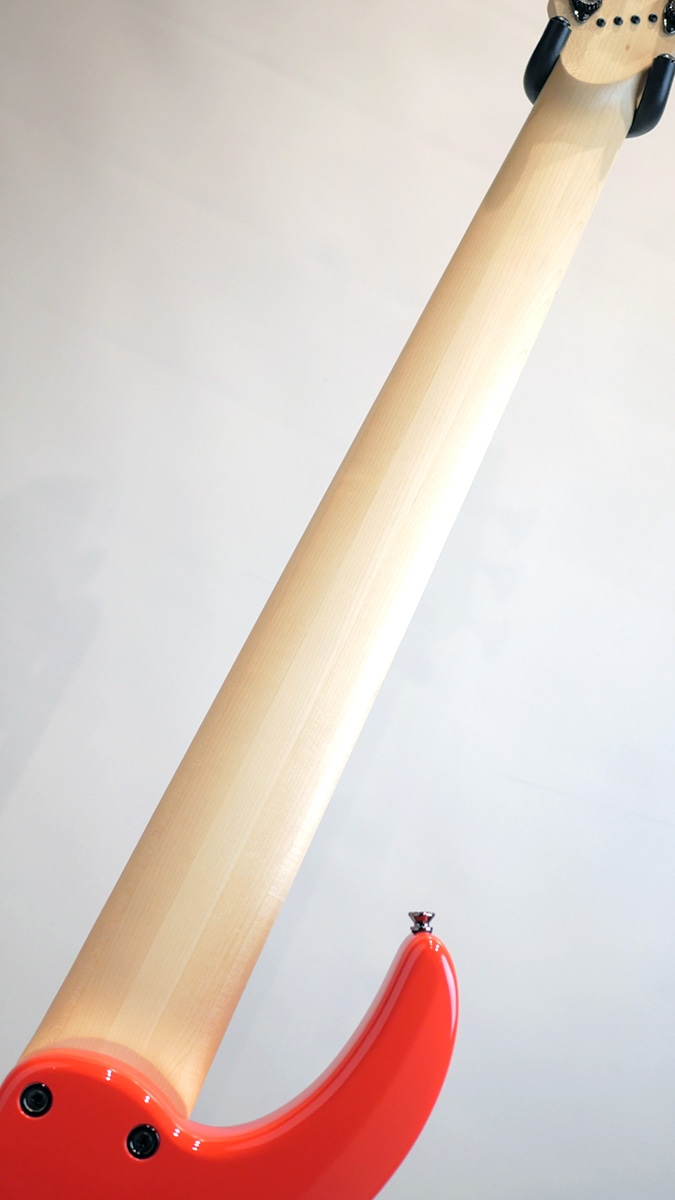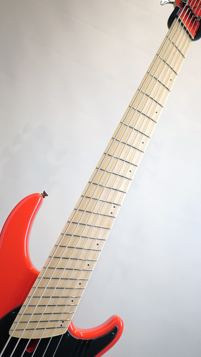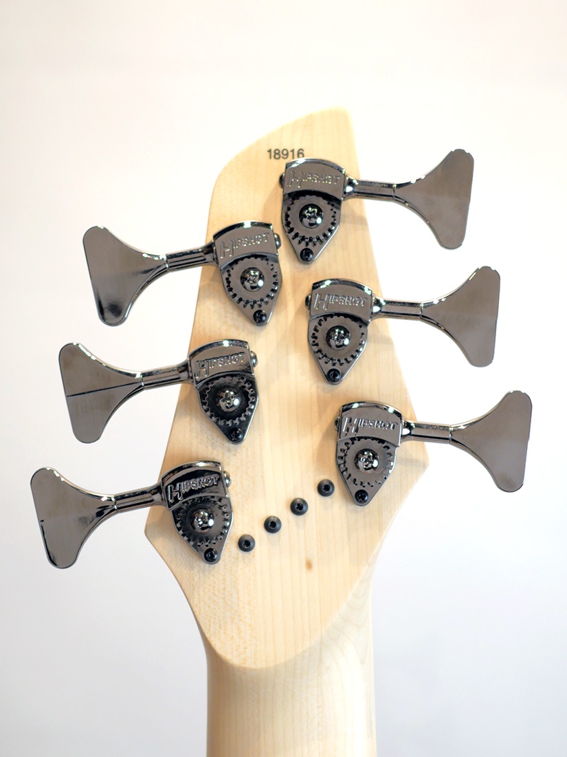 木材はDINGWALL本国にて保管されているものを使用し、最終組み込みも本国で行うという徹底された管理を経ております。Hi-C弦で33.25"、LowB弦で37"というファンドフレットシステムを採用することで、細い弦に向かうほどパンチのある甘いトーンを、また、太い弦に向かうほど立ち上がりの速い、明瞭かつ正確な音程感を伴ったトーンを再現することに成功しています。