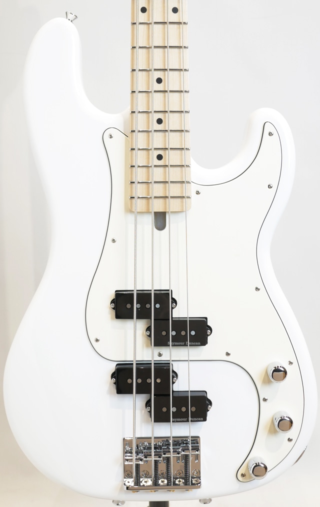 上位グレードのアーティストモデルと遜色無いスペックを持っており、PBシェイプのアッシュボディ、メイプルネック&指板、ハイポジションのアクセスがスムースなヒールカットジョイント、当モデルでの最大の特徴であるフロント&リアでマウントされた2基のセイモア・ダンカン製の”SPB-2”ピックアップを装備し、パワフルで迫力のあるアタックと音抜けの良い弾力と甘いミッドレンジを特徴としております。”SPB-2”はビンテージトーンをスタイルとした”SPB-1”と同じデザインを採用していますが、コイルターンを増やし出力をアップさせ、低域のレスポンスを上げた”SPB-1”よりもミッドレンジが強調されたロックサウンドに最適なトーンを特徴とします。
