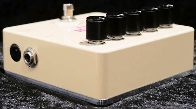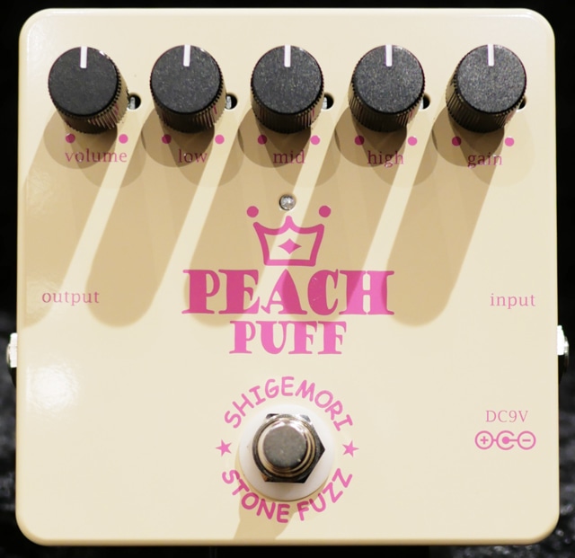「PEACH PUFF」はVolume、Low、Mid、High、Gainで構成され、3バンドEQにてサウンドメイクが可能なベースファズです。ポピュラーな「ファズ」を想像すると別次元に連れて行ってくれる頼もしいサウンドを持った逸品です。