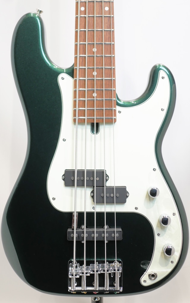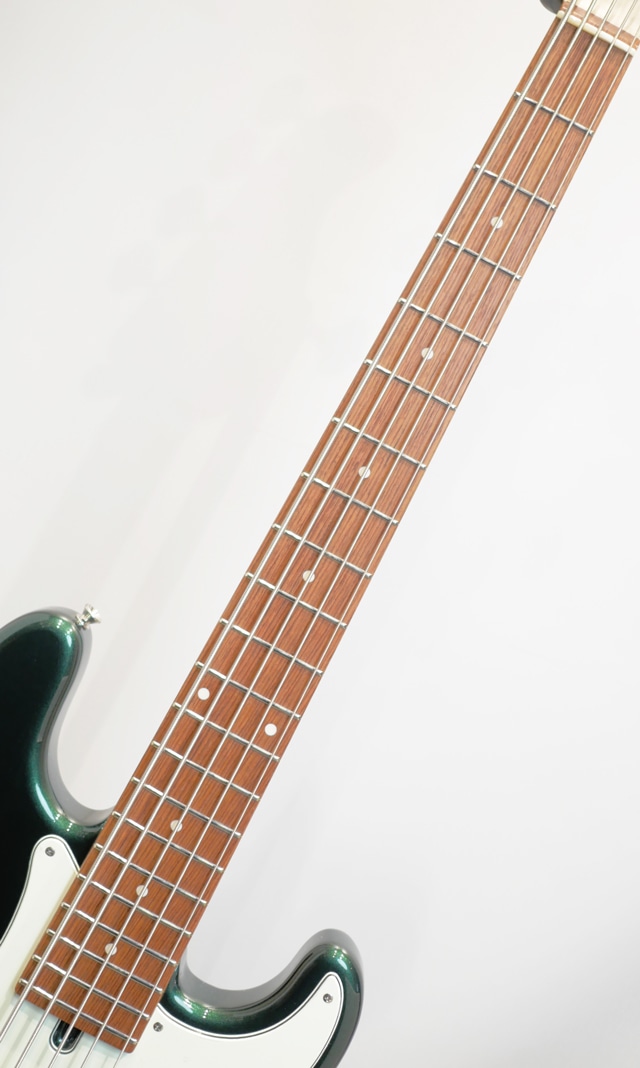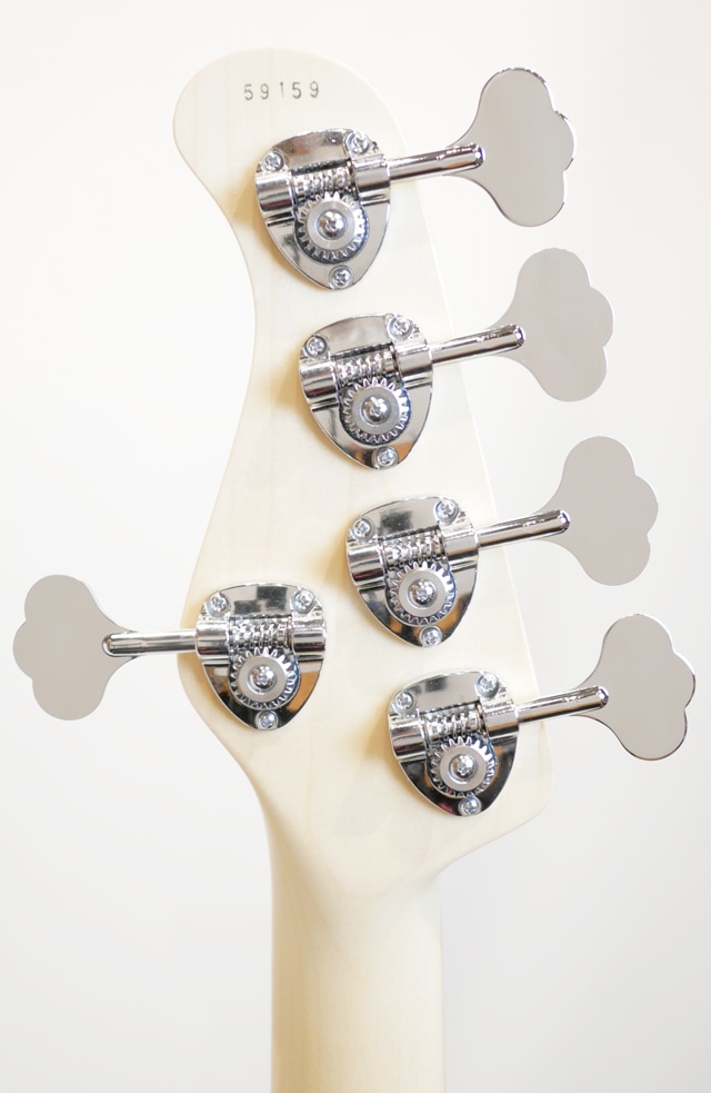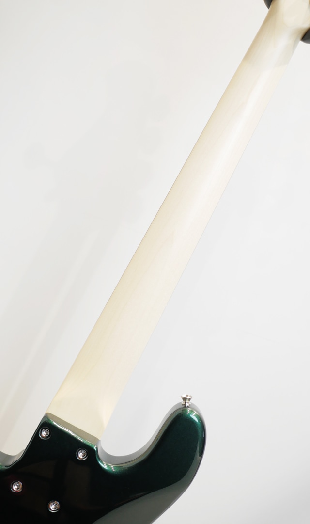 アルダーボディ、ボルトオン構造のメイプルネック/ローズウッド指板の21フレット仕様。ピックアップにはアメリカのロスを拠点とする"KUWABARA PICKUPS”がデザインしたP&Jモデルを搭載したパッシブモデル。コントロールは1ボリューム、ピックアップバランサー、マスタートーンのシンプルな構成、GOTOH製ペグ&ブリッジを装備しパーツカラーはクロームカラーに統一、そして須藤モデルのトレードマークである木製フィンガーレストをリアピックアップにマウント。本機では今回からJBシグネイチャーモデルに加わったカラー”Ocean Turquoise”が採用されております。