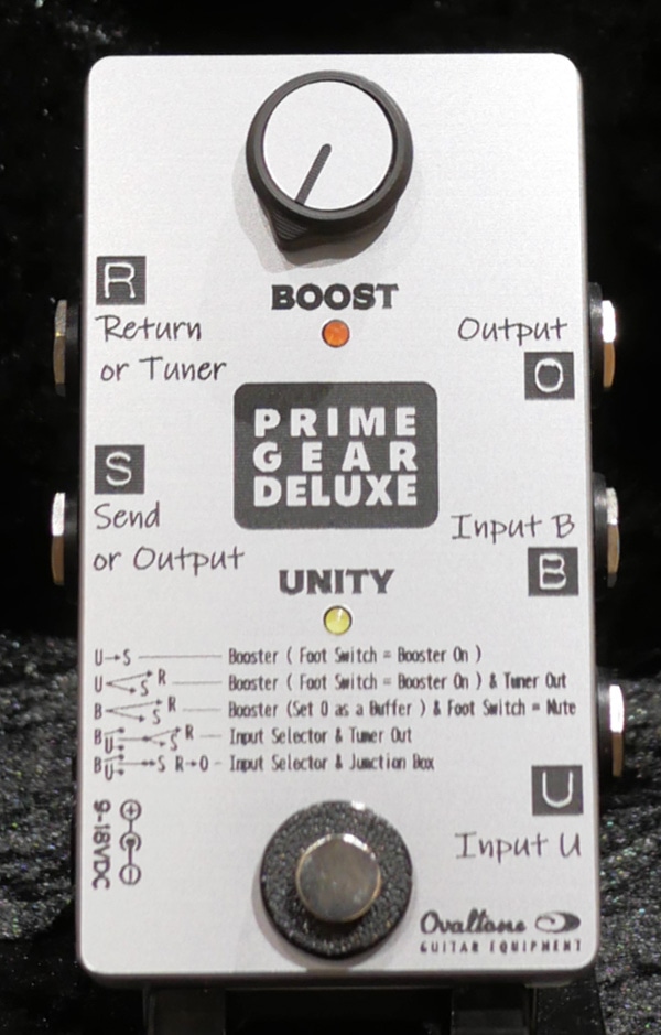 Uインプット、Bインプットそれぞれにギターやベースを接続し、2本の楽器をフットスイッチにて切り替えることが可能で、その際にBOOSTノブを絞り切っておけば、シンプルな2インプットセレクターとしての使用となりますが、たとえば2本の楽器のうち出力が小さい方の楽器をBインプットに接続することで、BOOSTノブを使って2本の出力差をそろえることが出来るインプットセレクターとして使用できます!