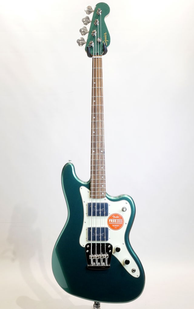 Fender Bass VIモデルのオフセットボディに、Fender Coronado Bassのユニークなヘッドシェイプ、Mustang Bassのストリングスルーボディブリッジ、3ウェイスイッチング、そしてSquierのロゴが刻印されたFender Design Wide Rangeハムバッカーを搭載しており、ショートスケールと2ハムが相まってパンチのある太く暖かいサウンドを体感でき、これまでに展開された様々なシリーズの特徴を組み合わせたこのベースは、それぞれの個性が乗数的に影響し合い、唯一無二の個性を生み出したベースになっております。