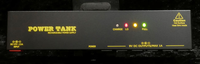 スリムでコンパクトな筐体には9V電源端子は6口装備しており大抵のエフェクターには使用できるものとなっております。ACアダプターを使った時のノイズが入りにくいうえ、使用できる時間も長くPower Tankの充電満タン時、消費電流が70mAのペダルを6台繋いでも約4時間45分も持続し、LIVE1本は問題なく使用できるほどのバッテリー容量となっております。充電時間も約2.5時間と短めで、充電残量も分かりやすくLEDで確認できるようになっております。