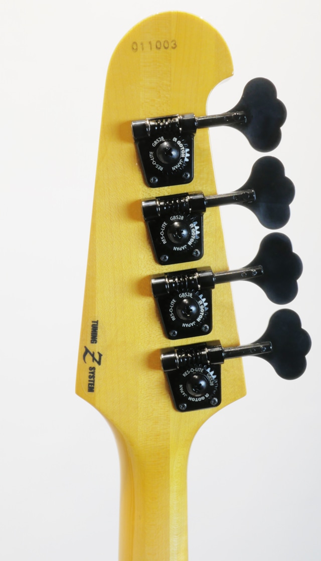 ・BK-4(KenKen Signature Model)は、「Beta4(モデルチェンジ前)」を基に、外観のルックスを象徴するミラーピックガード、4弦をワンタッチで1音下げに切り替えるDチューナー、かつて「M#245」を使用していた経緯からプリアンプは「Bartolini XTCT」に換装し、さらにミッドブーストモジュール「Bartolini MCT375」を加えXTCTの500Hzから375Hzでのブーストが可能になり、より強力なローミッドが得られる設計と手元でのコントロールも可能なカスタマイズが施されております。
