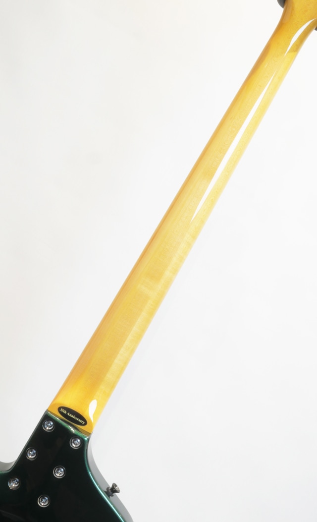 「Roman Bird」の持つコンセプトをしっかりと継承したカスタムモデルとなり、レギュラースペックからデュアルコイルのバルトリーニピックアップへカスタムされたことにより更に屈強な中低域の太さが印象的なサウンドを持ち、見た目も音もワイルドでド派手な仕上がりになっております。