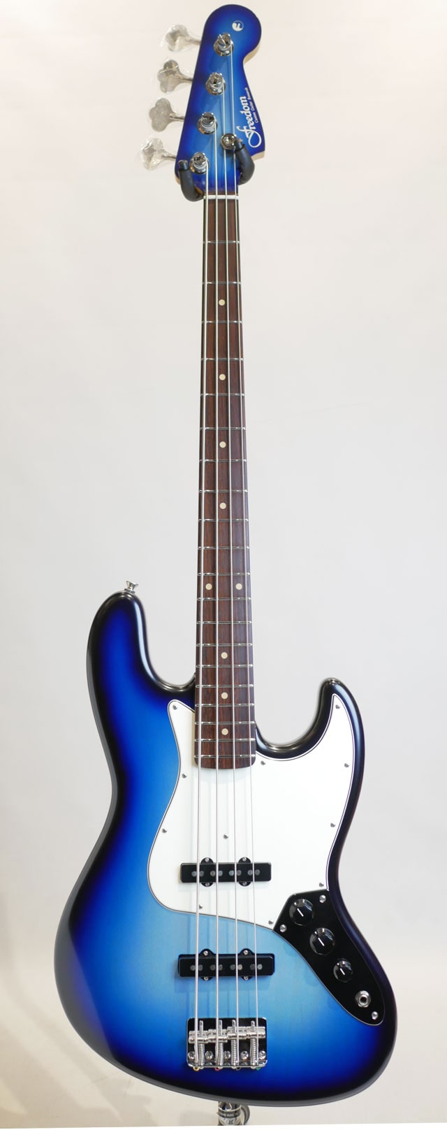 アルダーボディ、メイプルネック/ローズ指板。60sを彷彿とさせるトラディショナルなスペックで構成されたモデル。塗装はフリーダムオリジナルフィニッシュの5:00をマッチングヘッドにて採用。ニトロセルロースラッカーにて吹かれております。ピックアップはオリジナルピックアップのJB-Vintage。フレットはフリーダム十八番のステンレスフレット(WARM)。総重量約4.35kgと、標準よりも若干重めの個体になります。