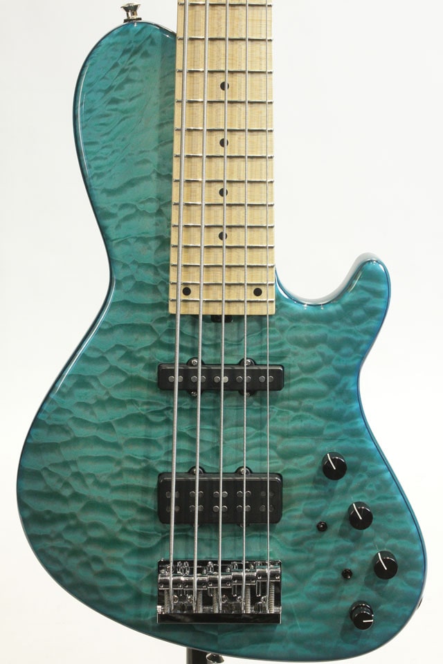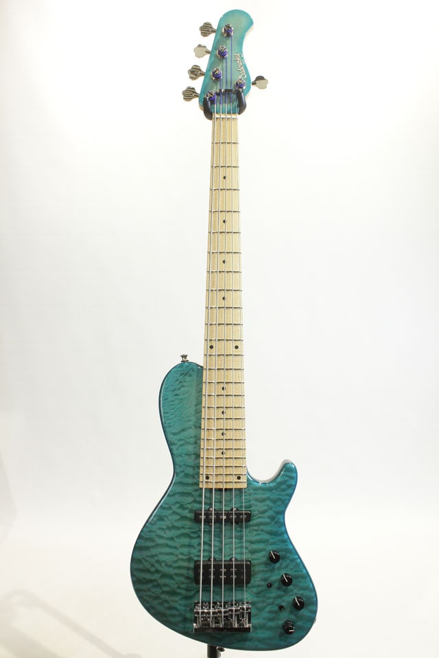 マスターグレードのキルトメイプルトップ&アッシュバックのラミネイトボディ。チェンバー構造にて設計されており、総重量約3,9kgと非常に軽量です。指板とネックにはメイプルをセレクトしております。ピックアップはDual JとHumcancelingを、プリアンプはサドウスキープリアンプ+ウィルリープリアンプ(ミッドブースター)を搭載。ミッドブースターのON/OFFスイッチと、リアピックアップのフロント(タップ)/センター/リア(タップ)への切り替えスイッチがリンクしておりますので、幅広いサウンドメイクが可能です。