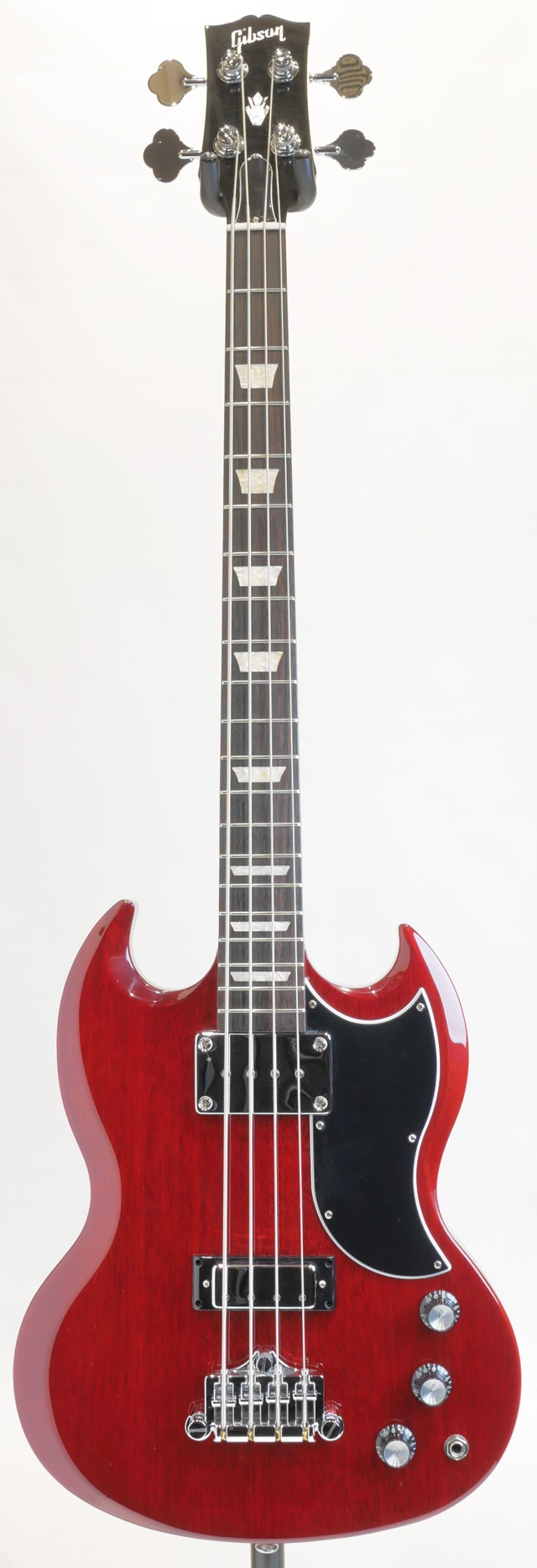マホガニ―ボディ、マホガニーネック/ローズ指板のSGベース王道スペック。野太いウッディなサウンドをアウトプットするフロントピックアップ、それとは対照的にエッジの効いたサウンドをアウトプットするリアピックアップ。ミックスで使うとバランスも良く、ジャズべやプレべでは出せない独特のサウンドです。登場以来、根強い人気があり今も尚愛されるギブソンを代表するべ―スモデルです。