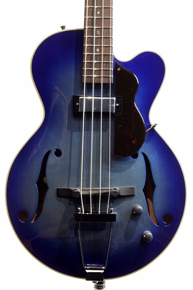 総重量約2,5kgと軽量なウェイトのフルアコベース、長年箱物を制作して来た技術と経験をインストールし、アーチドトップ&バックを始めテールピースや木製のブリッジサドルにfホールと言ったジャズギターの要素が多く見受けられるクラシカルなモデルになります。ボディトップにはスプルースをセレクト、ボディサイド&バックにはメイプルが使用され、ピックアップはフロント一発とシンプルなスペックも印象的です。