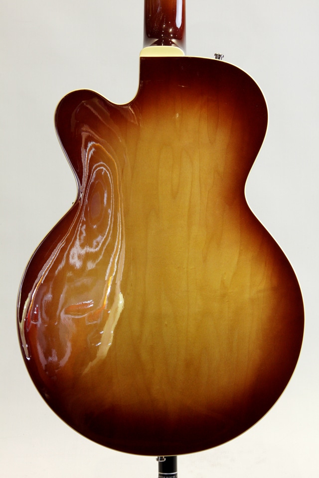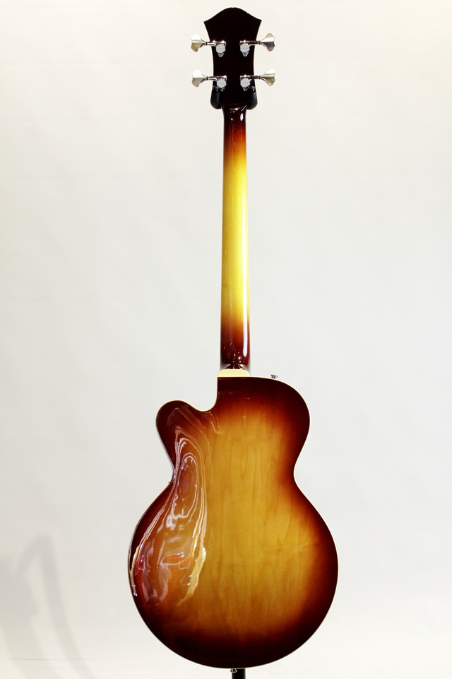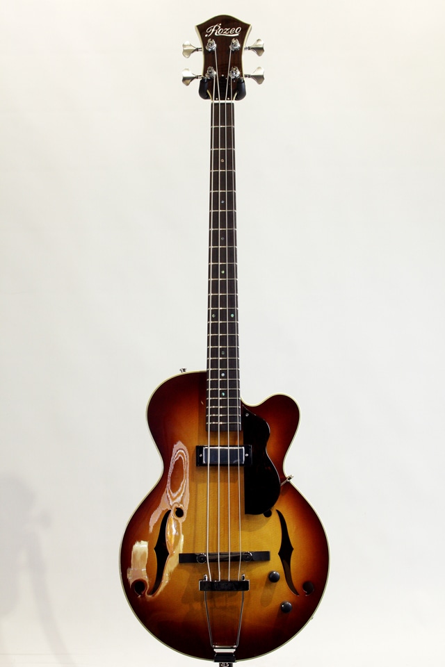 総重量約2,5kgと軽量なウェイトのフルアコベース、長年箱物を制作して来た技術と経験をインストールし、アーチドトップ&バックを始めテールピースや木製のブリッジサドルにfホールと言ったジャズギターの要素が多く見受けられるクラシカルなモデルになります。ボディトップにはスプルースをセレクト、ボディサイド&バックにはメイプルが使用され、ピックアップはフロント一発とシンプルなスペックも印象的です。
