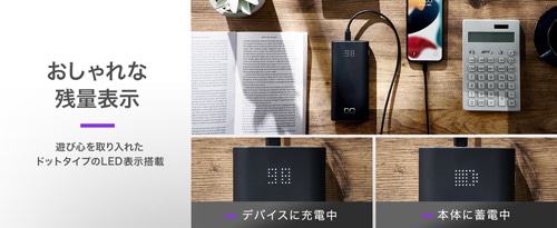 本製品は画期的な急速パススルー充電機能を搭載しており、デバイス、モバイルバッテリー、両方の残量が少なくなっても本製品を経由しながら両方ともに急速充電が可能です。コンセントが1つしかない環境や、両方を充電したときに重宝します。