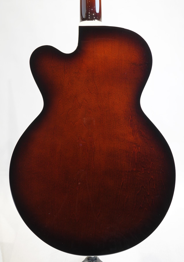 スプルーストップに、メイプルサイド&バックのホロウボディ。セットネック構造のメイプルネック/ローズウッド指板。ピックアップはフロントに一発搭載。空気感を含んだウッディなトーンニュアンスを想像されるかと思いますが、音像の輪郭はハッキリしており音程感もしっかりございます。素早いパッセージにもついてくるレスポンスの良さも兼ね備えております。国産特有の硬質感が良い方向へとサウンドを導いているように思います。