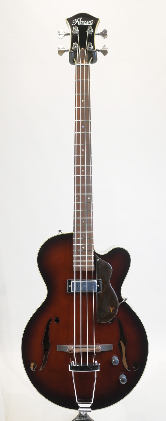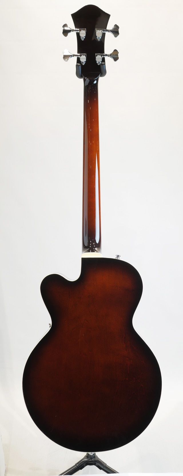 総重量約2,5kgと軽量なウェイトのフルアコベース。培ってきた技術と経験をインストールしたホロウ構造のベースモデル、この手のベースは数も少ないので貴重です。アーチドトップにテールピース、木製ブリッジサドルやfホール等ジャズギターの要素が色濃く反映されております。