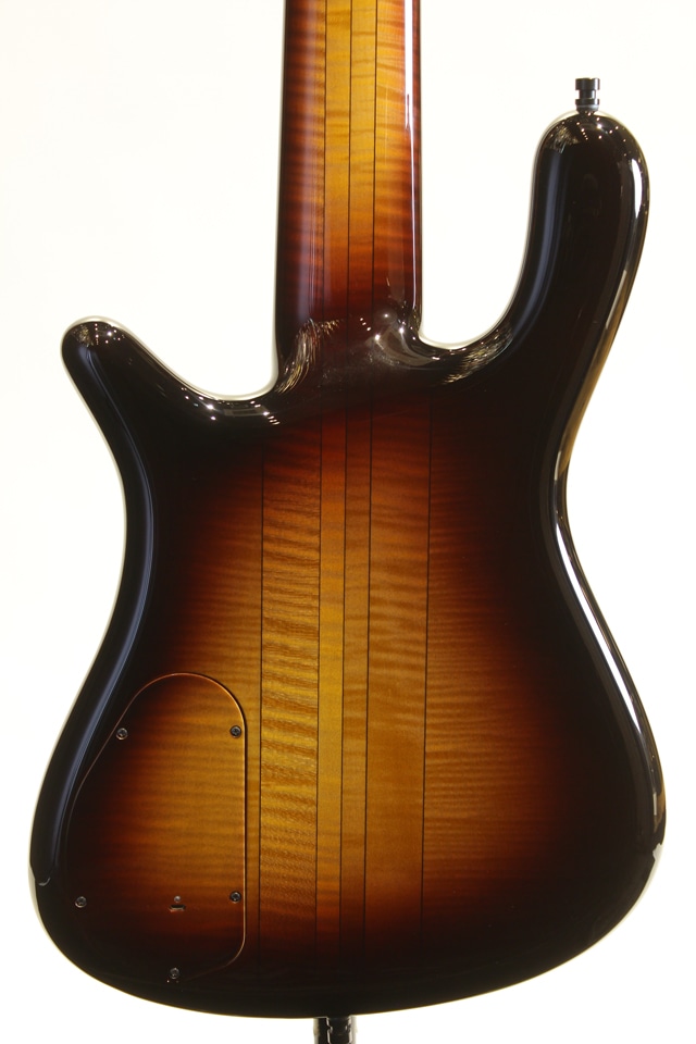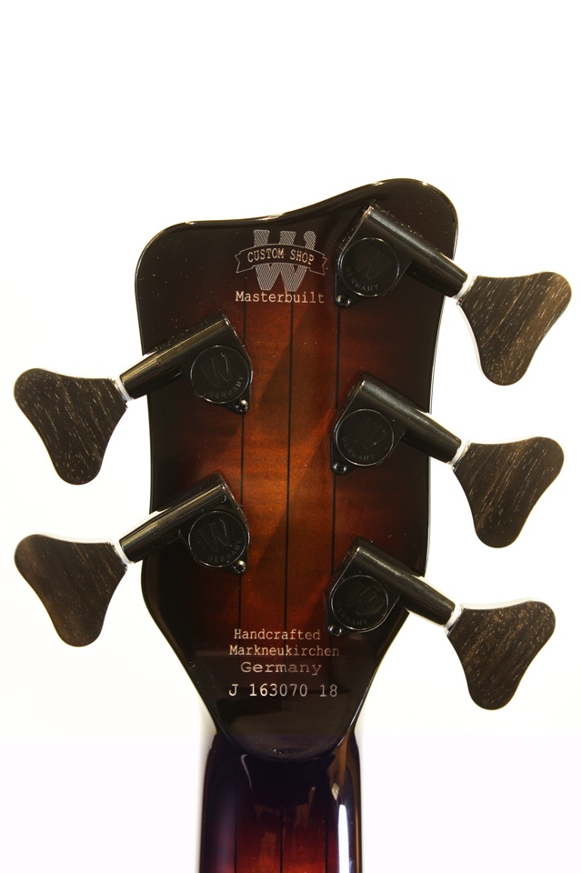 AAAフレイムメイプルボディ、スルー構造の4pcフレイムメイプルネック/タイガーストライプエボニー。MECピックアップ&プリアンプを搭載。総重量約4,8kgとワーウィックらしいウェイトをキープした個体。
