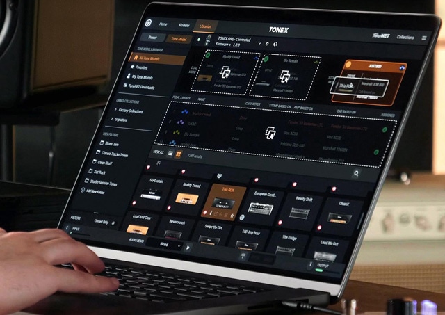 無料の専用アプリ「 TONEX SE」 には、自作 Tone Model の作成が可能な「Modeler」機能も実装されています。お気に入りのアンプ、キャビネット、ストンプなどをキャプチャーし、Tone Model として TONEX One に転送しておけば、実機の持ち込みが困難なライブ会場でも、自分ならではのトーンで演奏可能です。
