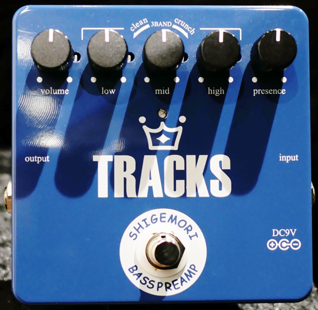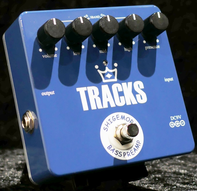 「TRACKS」はVolume、Low、Mid、High、Presenceで構成されるシンプルながらも、その拘りが出音から感じられるSigemori流ベースプリアンプです。