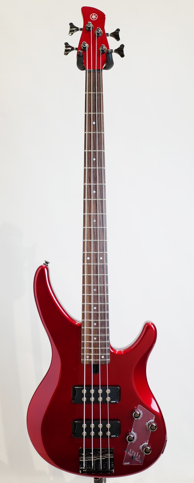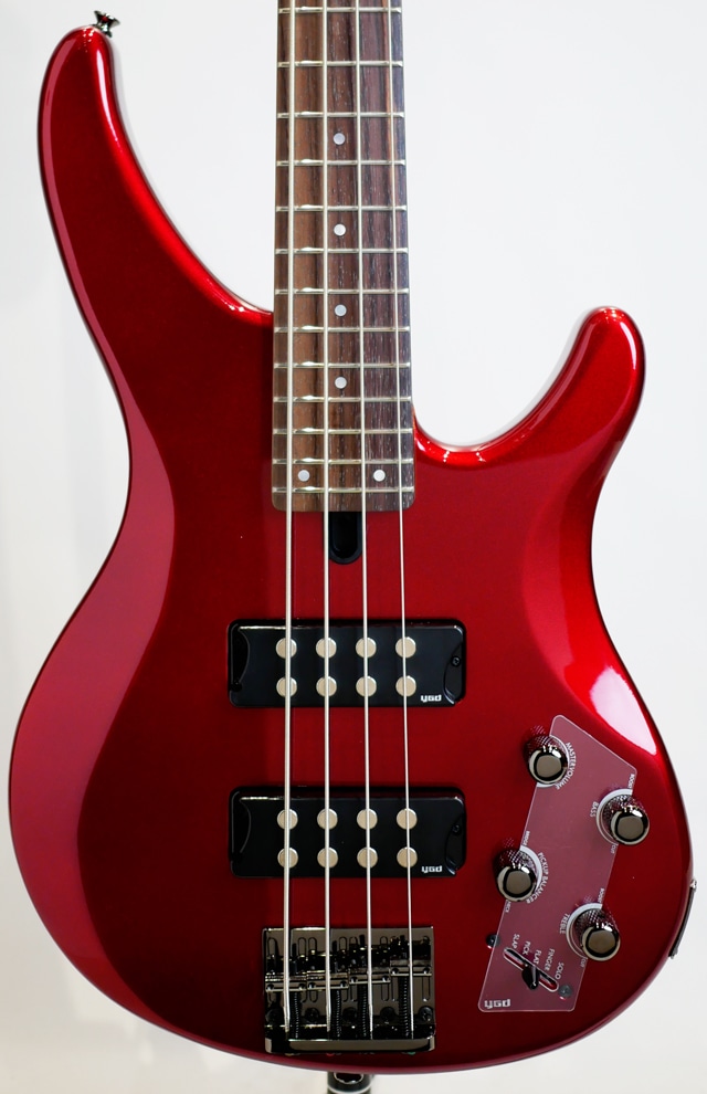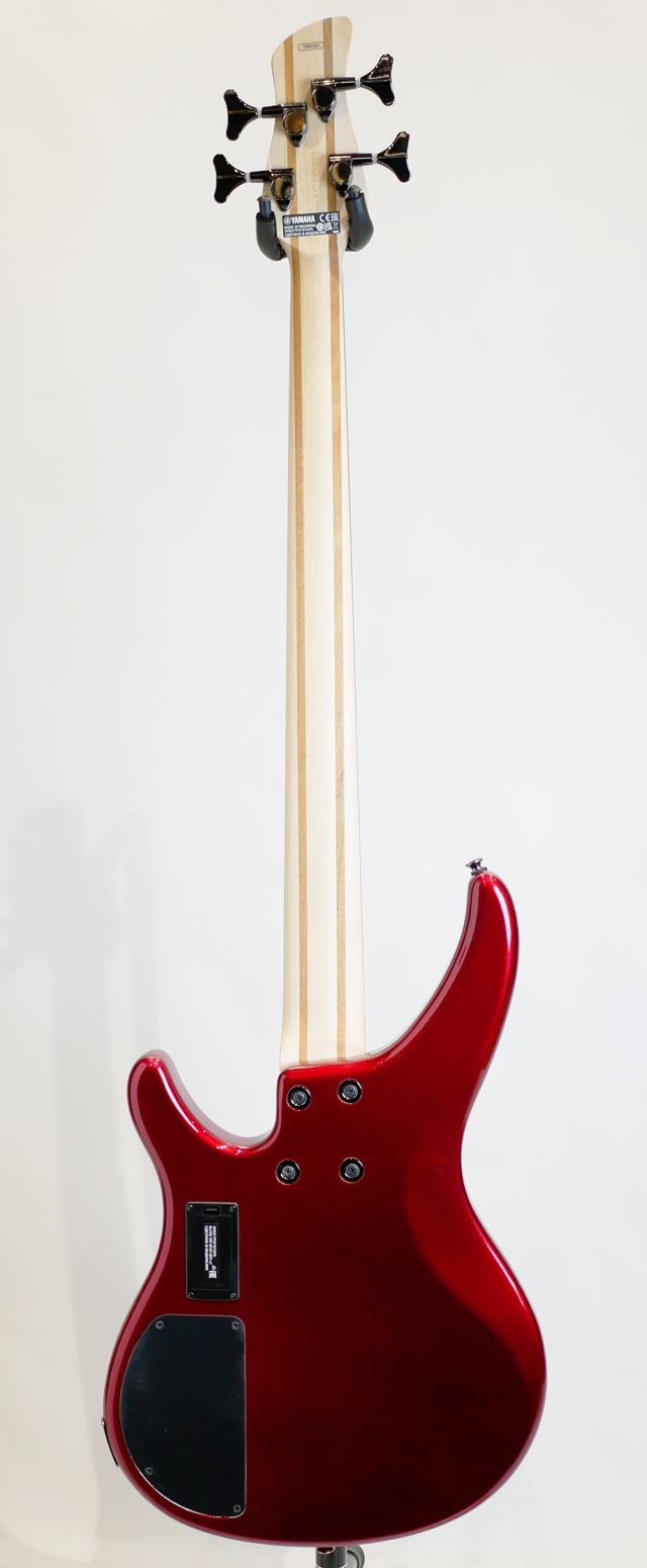 “TRBX”300シリーズ4弦モデル “TRBX”300シリーズには、ヤマハ独自の「パフォーマンスEQ機能」が搭載されております。プロミュージシャンが厳しいサウンドチェックを繰り返し、奏法にあわせて調整された「スラップ」「ピック」「フラット」「フィンガー」「ソロ」5種類のEQセッティングをプリセットし、スイッチ切り替えにより様々な奏法に最適なトーンセッティングを瞬時に切り替えることが可能です。 豊富な低中音域を持ち、あたたかく粘りのあるサウンドが特長のマホガニー材をボディ採用し、ボディ全面に施された立体的なカットは、ベースとしての鳴りを損なわない絶妙な重量バランスを保ち、優れた演奏性と軽量化を実現しています。 ネックは反りやゆがみに強いメイプル&マホガニーの5ピースネック構造を採用することで、弾きやすいスリムなネックシェイプでありながら優れたネック強度を実現しており、スリムなネック形状と立体的にカットされたボディが抜群のバランスと演奏性を誇ります。 特徴的なデザインと大型ポールピースのセラミックマグネットを採用した新開発ピックアップを搭載し、高出力設計・ハムキャンセル機能により、パワフルなサウンドながらノイズの軽減を実現しています。フィンガーレスト付きピックアップカバーで初心者にも指弾きのプレイポジションが決め易く演奏性も抜群です。 さらに「パフォーマンスEQ機能」に加えベースとトレブルの2バンドアクティブEQにより緻密なサウンドメイクも可能です。ライブやレコーディングでも活躍できるポテンシャルを備えベーシストのモチベーションを刺激するモデルです。 エントリー向けに位置付けられたモデルではありますが、ポテンシャルが高くコストパフォーマンスに優れておりますので1本目の初心者にも安心、ベース経験者にもオススメのモデルです。 ※掲載画像はサンプルです。 弦長 : 863.6mm ボディ : マホガニー ネック : メイプル+マホガニー5ピース / ボルトオン 指板 : ローズウッド / 24F / 250R / 38mm ピックアップ : セラミック x2 コントロール: トレブル、ベース、マスターボリューム、 バランサー、パフォーマンスEQ Case:オリジナルソフトケース