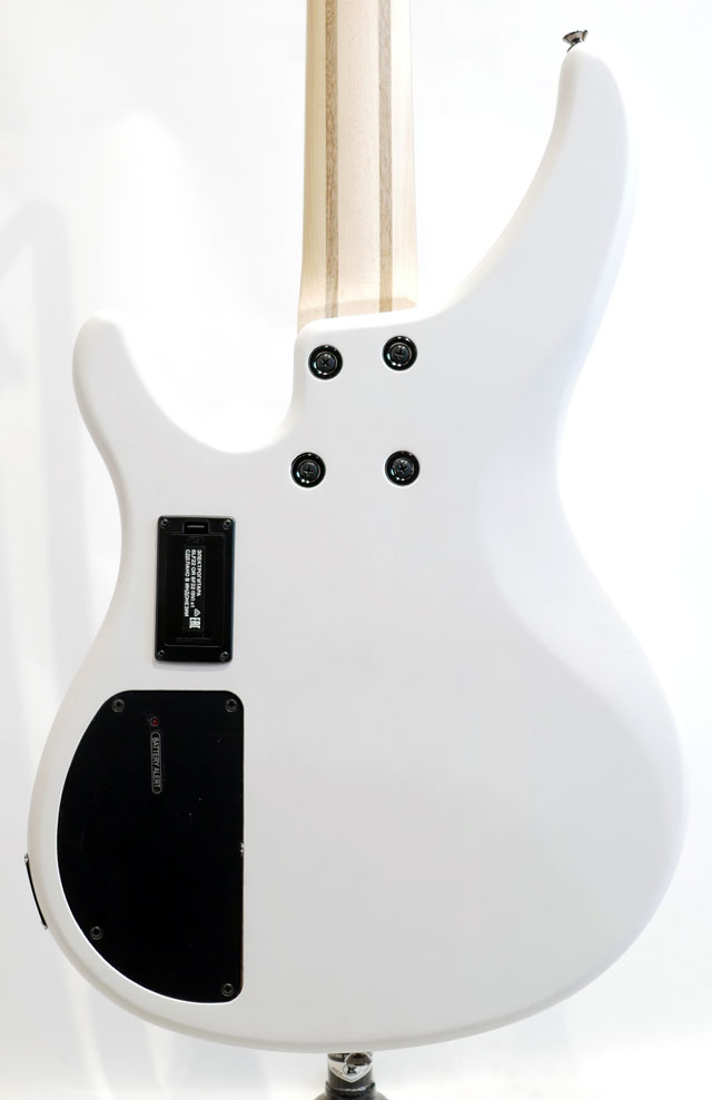 “TRBX”500シリーズ4弦モデル “TRBX”500シリーズではアクティブ・パッシブをスイッチひとつで切り替えが可能となり、繊細で暖かみのあるパッシブサウンドと、クリアで幅広いサウンドメイキングができるアクティブサウンドを使い分けが実現しています。切り替えスイッチには、接触不良や音質劣化が起こりにくい高品質な金メッキパーツを使用し導電性の向上、緻密な設計によりスイッチ切り替え時の音量差を感じさせず音質に拘るプレイヤーの信頼に応えます。また、ボディ背面のパネルに搭載されたバッテリーアラートLEDは、電池が消耗すると点灯し電池交換のタイミングを知らせ、ステージでの突然の電池切れを防ぎます。 豊富な低中音域を持ち、あたたかく粘りのあるサウンドが特長のマホガニー材をボディ採用し、ボディ全面に施された立体的なカットは、ベースとしての鳴りを損なわない絶妙な重量バランスを保ち、優れた演奏性と軽量化を実現しています。 ネックは反りやゆがみに強いメイプル&マホガニーの5ピースネック構造を採用することで、弾きやすいスリムなネックシェイプでありながら優れたネック強度を実現しており、スリムなネック形状と立体的にカットされたボディが抜群のバランスと演奏性を誇ります。 アルニコVマグネットを採用した新設計のデュアルコイルピックアップを搭載。アクティブ、パッシブを切り替えられる仕様と3バンドEQによりバリエーション豊かな音色を実現しています。アクティブモードではクリアでパワフルなワイドレンジトーン、パッシブモードではウォームで繊細なサウンドを引き出します。”300”シリーズよりも低域の太さと力強さが増したサウンドキャラクターが特徴的です。 ”TRBX”500シリーズではボディカラーにマットフィニッシュを採用しており、グロスフィニッシュとは異なったサラサラの手触りと光沢の落ち着いた外観もポイントです。サウンド、ルックス共に上質となった仕上がりとなっております。 弦長 : 863.6mm ボディ : マホガニー ネック : メイプル+マホガニー5ピース / ボルトオン 指板 : ローズウッド / 24F / 250R / 38mm ピックアップ : アルニコV x2 コントロール : トレブル、ミドル、ベース、マスターボリューム、 バランサー、アクティブ・パッシブスイッチ、バッテリーアラートLED(背面) ケース : オリジナルソフトケース