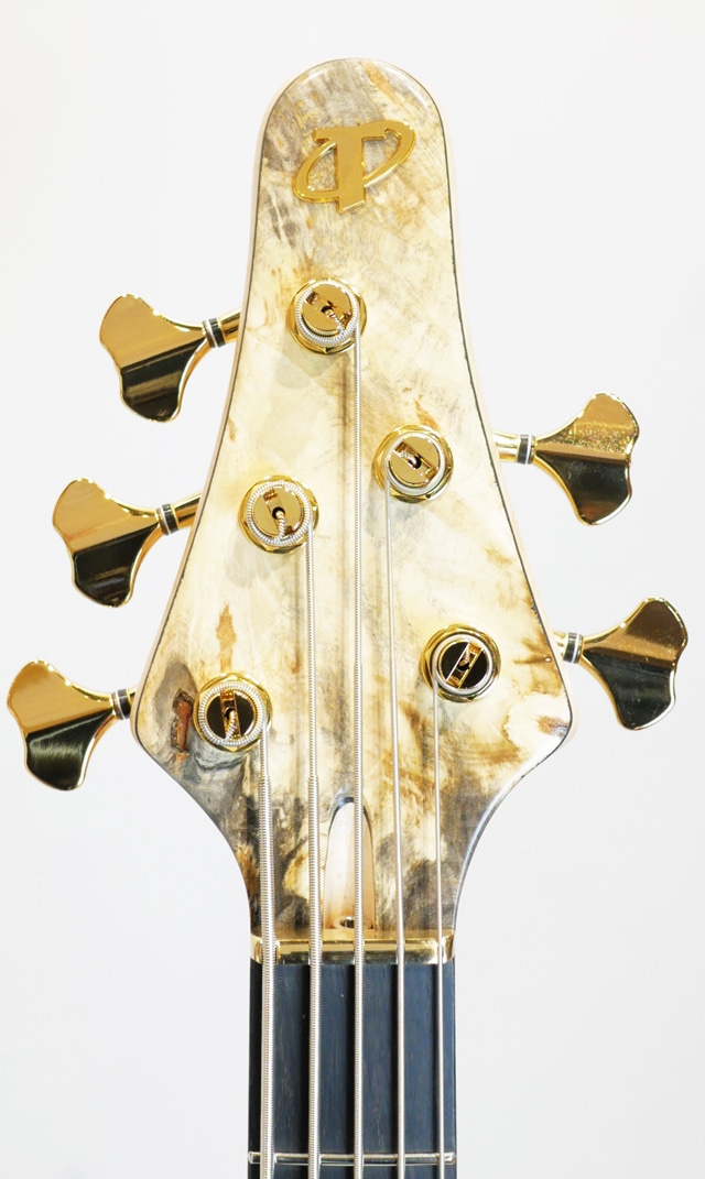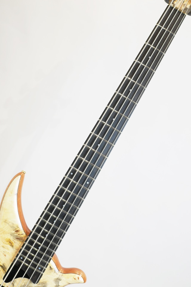 当機のトップ材にはその杢が彩る唯一無二の豊かな表情を持ち、エキゾチックウッドの中でも高い人気を持つバックアイバール材をチョイスしております。メーカー工房に直接赴き、極上のストックの中からピックアップしてまいりました。ナチュラルカラーでのフィニッシュにて仕上げることで木材の持つ自然な色と個性を存分にお楽しみ頂けます。バック材にはマホガニー材、剛性の高いメイプル材3ピースネック、エボニー材指板をセレクトしております。