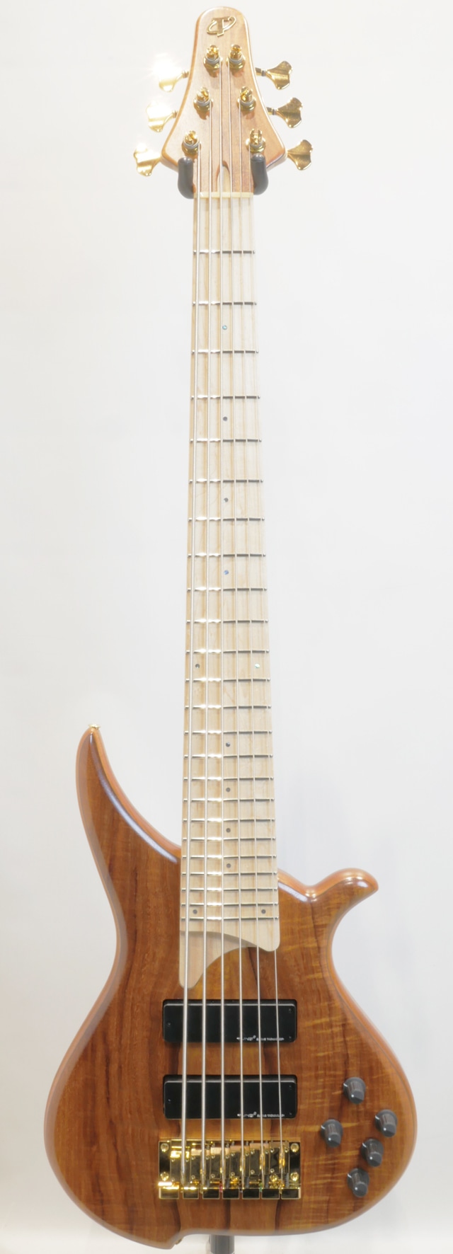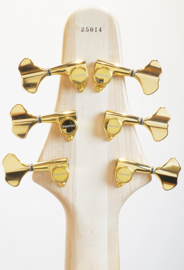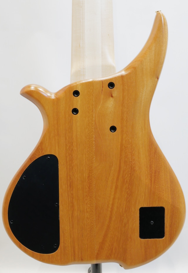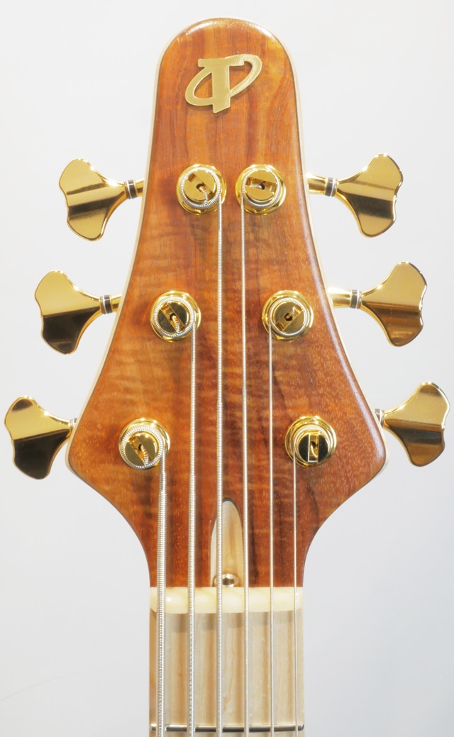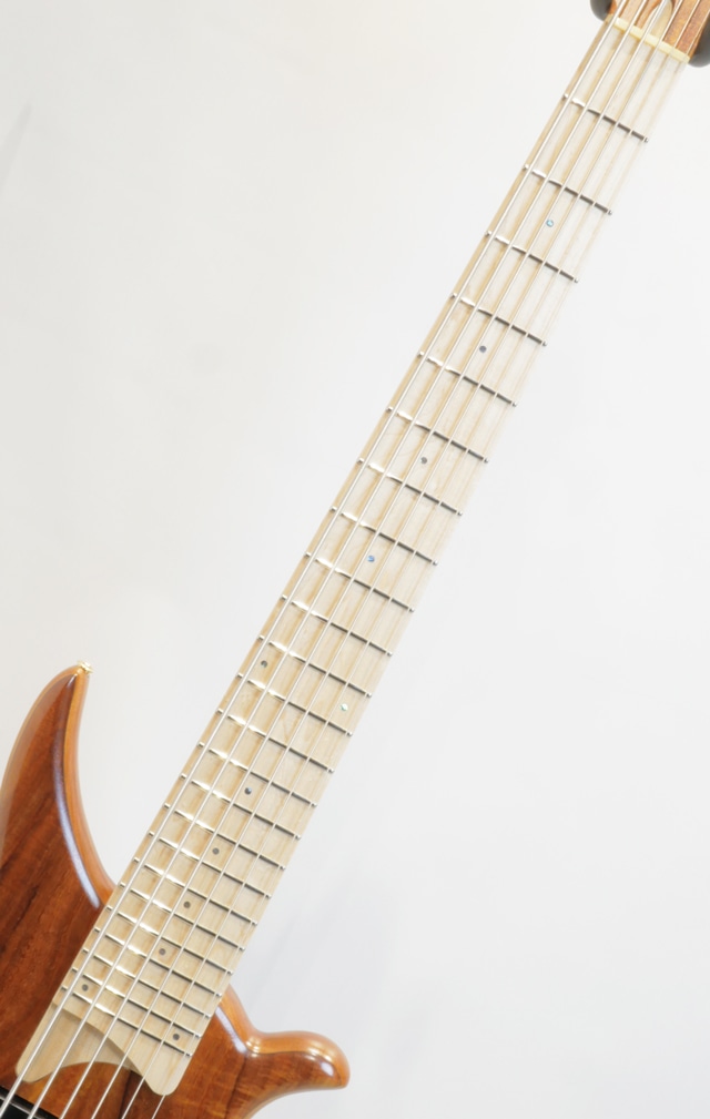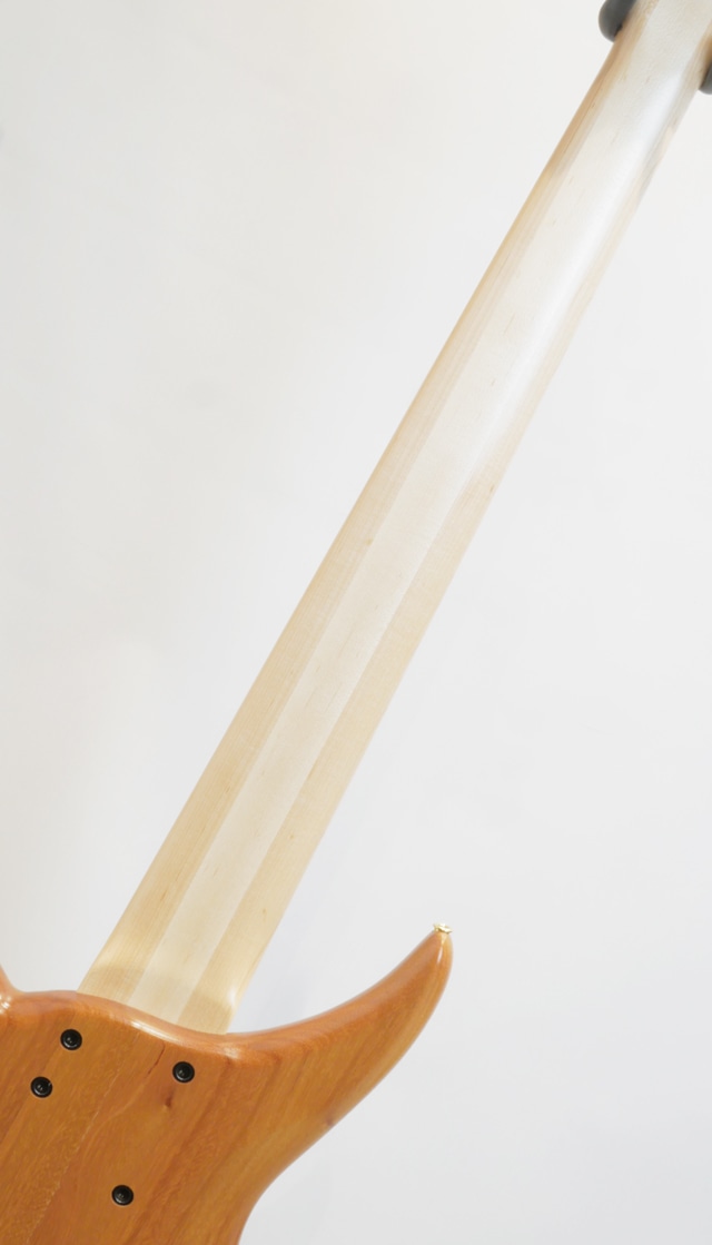 当機のトップ材には、独特な色合いを持つ杢目とその引き締まった音色でトーンウッドとして人気の高いハワイアンコア材を国内工房にて選定。ハワイアンコア材は特にウクレレやアコースティックギターのトーンウッドとして用いられ、アタックレスポンスの良さに温かみの備わった中低域と明るくクリアな高音域が合わさった独特の力強さがあり、もちろんエレキベースにても度々用いられているサウンドバランスの良さと高級感溢れるそのルックスもお楽しみ頂けます。