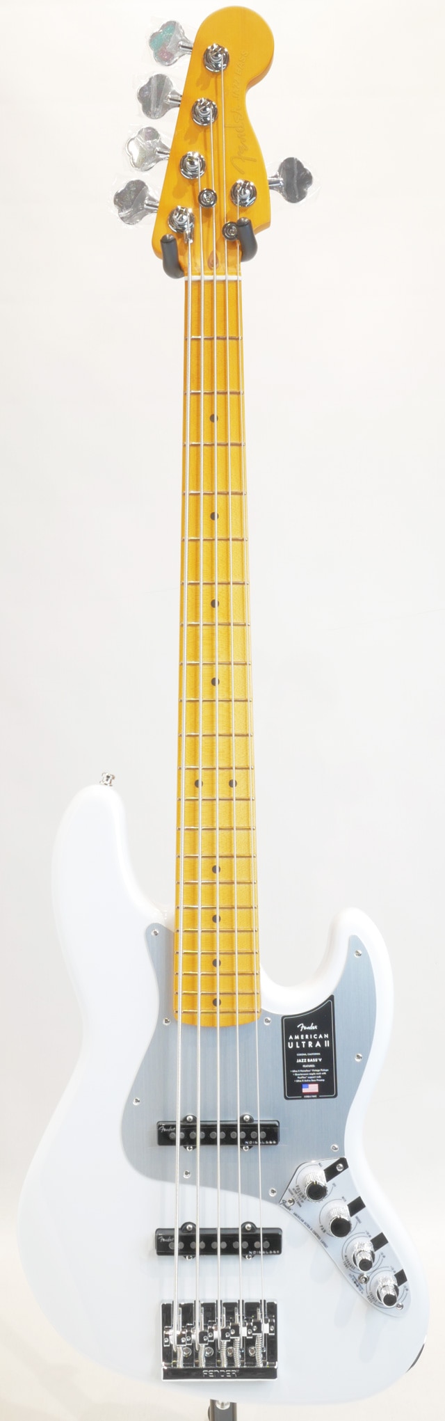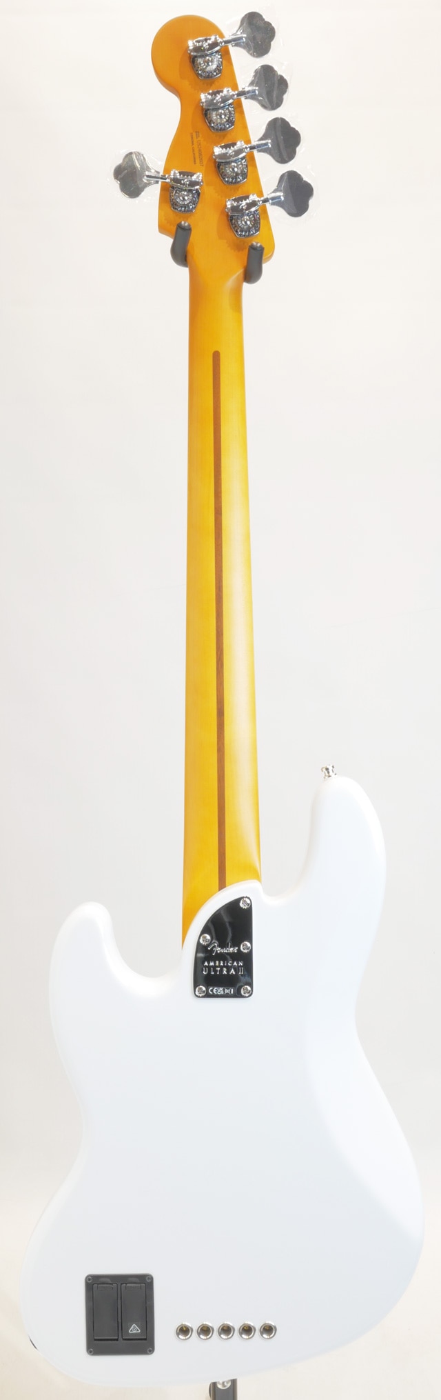 こちらのジャズベースはアルダーボディ、メイプルネック/メイプル指板。ノイズレスピックアップをマウント、オリジナルプリアンプを搭載。UltraIIからインストールされた機能として、ミドルの周波数帯を切り替えるミニSWを装備、パッシブトーンがアクティブ時でも稼働し、サウンドメイクに更なる自由度を広げております。またボリュームポットにS-1スイッチが付いており、従来通りアクティブ/パッシブの切替が可能です。