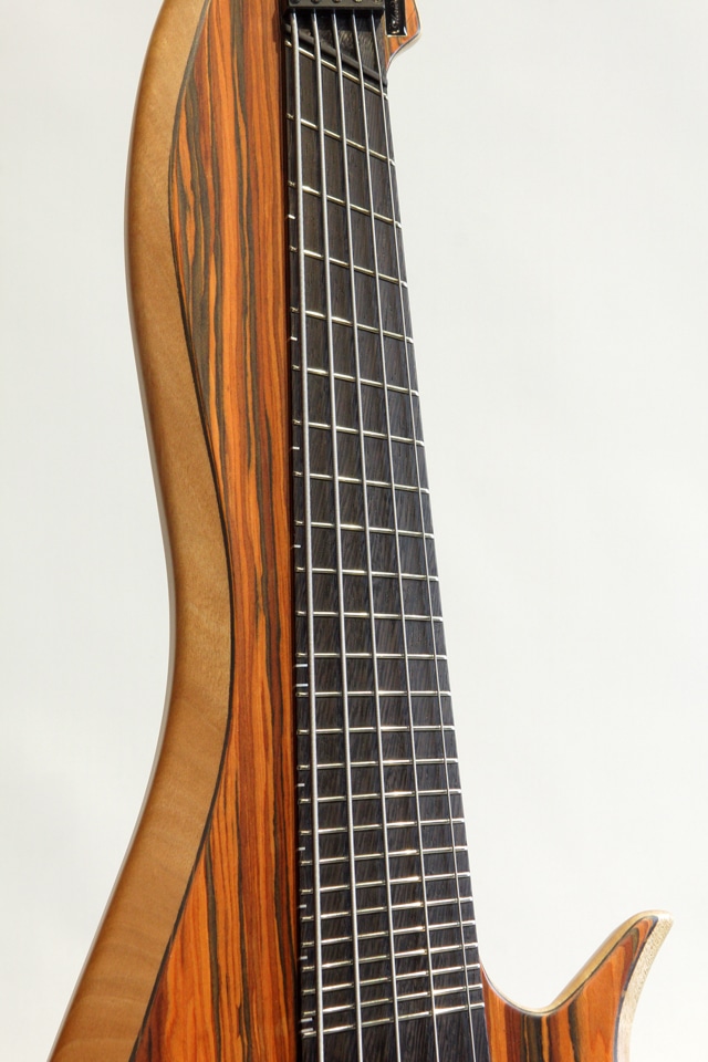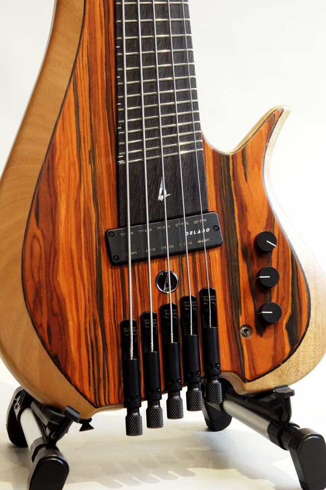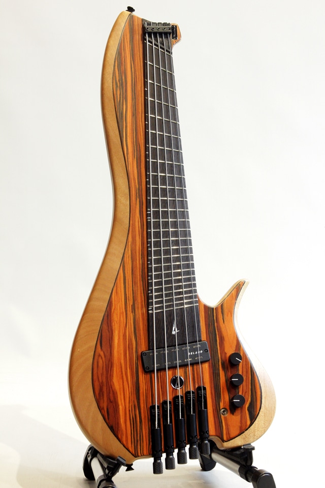 イタリアに工房を構えるMeridian Guitars、マルチスケールにて設計されたコンパクトベースVaiama II 5st。E,A,D,G,CのHi-C使用の5弦モデルになります。ボディトップには杢目の栄えたココボロをセレクト、ボディバックにはオクメを組み合わせており、ピックアップとプリアンプにはデラノを搭載、フルスケールのベースにも引けを取らない、太くバランスの良いサウンドを響かせてくれます。各ポジションの発音の良さと適度な倍音感も兼ね備えております。