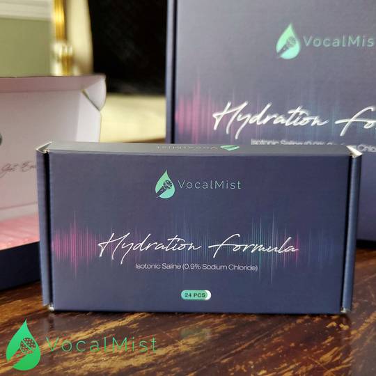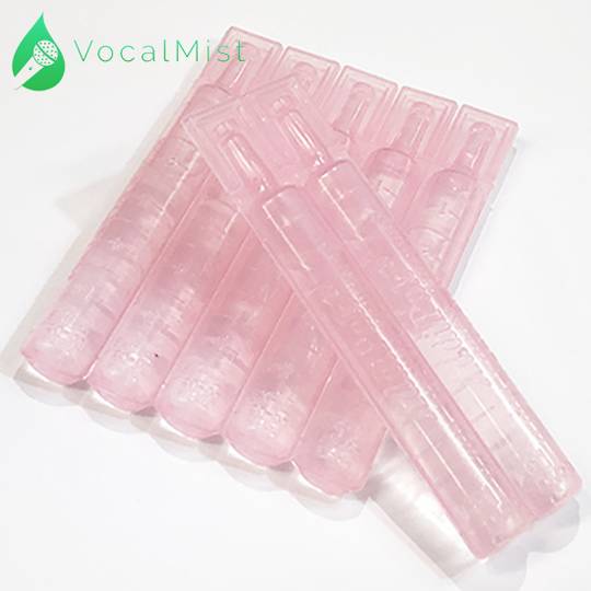 歌うたいの方、声のお仕事をされている方をはじめ、乾燥などから喉を守る効果も期待できるツールVocalMist Nebulizer専用Isotonic Saline(等張食塩水)、24本入パック。