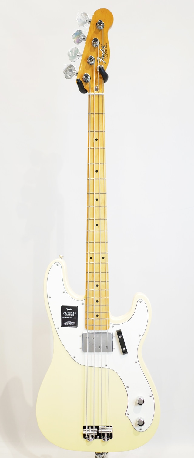 Vintera II 70s Telecaster Bassは、70年代のタイムレスなサウンドを現代に蘇らせ、フェンダーならではのアイコニックなルックス、インスピレーション、比類ないトーンを提供します。 Vintera II 70s Mustang Bassは、アルダーボディにメイプルネックを採用し、パンチと透明感に溢れたクラシックなフェンダートーンを実現します。70年代中期の"C"シェイプネックは、直感的で魅力的なプレイアビリティを提供する70年代モデルのネックプロファイルをベースに設計されており、7.25インチラジアス指板とヴィンテージトールフレットにより、大胆なベンディングや繊細なビブラートが可能で、ヴィンテージの快適さが得られます。ヴィンテージスタイルのワイドレンジベースハムバッカーは、温かでダイナミック、パワフルなフェンダーサウンドを提供します。ヴィンテージスタイルの2サドル式ブリッジと「Fender」刻印入りチューニングマシンは、クラシックなルックスに加え、イントネーションとチューニングの安定性を向上させます。 Vintera II 70s Telecaster Bassのクラシックなヴィンテージフィールと比類なきフェンダーサウンドで、あなたにしかできない、新たな音楽の歴史を刻み始めましょう。 FEATURES ・アルダーボディ ・7.25インチラジアスのメイプル指板、ヴィンテージトールフレット ・70年代中期の"C"ネックシェイプ ・ヴィンテージスタイルワイドレンジベースハムバッカー ・ヴィンテージスタイル2サドル式ブリッジ ・ヴィンテージスタイル「Fender」刻印入りチューニングマシン Condition:NEW Body : Alder Neck : Maple Neck Shape : Mid '70s "C" Fingerboard : Maple / 7.25" (184.1 mm) Machine Heads : Fender '70s Vintage-Style Stamped Open-Gear Bridge : 2-Saddle Vintage-Style Adjustable with Steel Barrel Saddles Pick Guard : 3-Ply Parchment Pick up : "Wide Range" Humbucking Bass Preamp:---- Scale : 34" (863.6 mm) Case : Deluxe Gig Bag