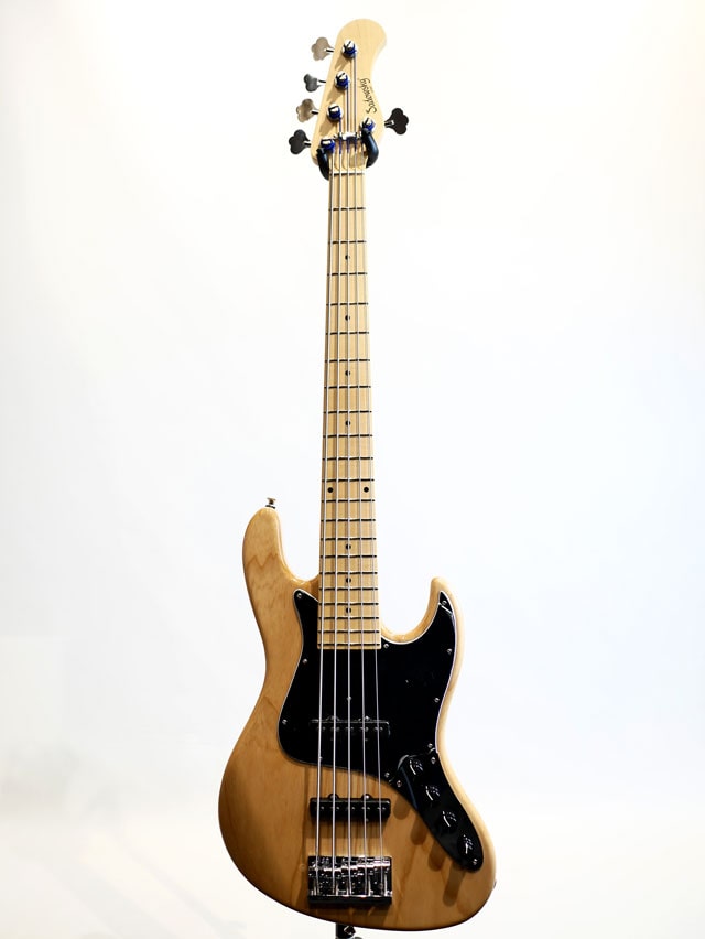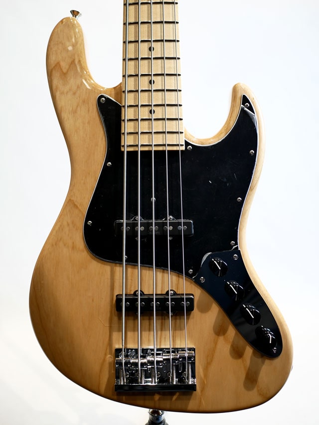 ディンキーシェイプ、ソリッドアッシュボディ、メイプルネック/メイプル指板。ハムキャンセリングピックアップ&オリジナルプリアンプを搭載。ソリッドボディですが総重量約4,1kgと軽量な個体です。アッシュらしいタイト感と明瞭感が如実にサウンドに加味された抜けの良いサウンドを響かせてくれます。チェンバーボディと比べサウンド全体のタイト感が如実に増しております。中音域の存在感もしっかり出ており、サウンドバランスも良くワイドレンジに構成されております。ダイナミクスもありピッキングへのレスポンスもスムーズですので、弾き手のフィーリングを余す事無く表現してくれる期待値の高い個体です。Low-Bの再生能力も高く、抜け良し、発音良し、音程感良しの3拍子も揃っております。